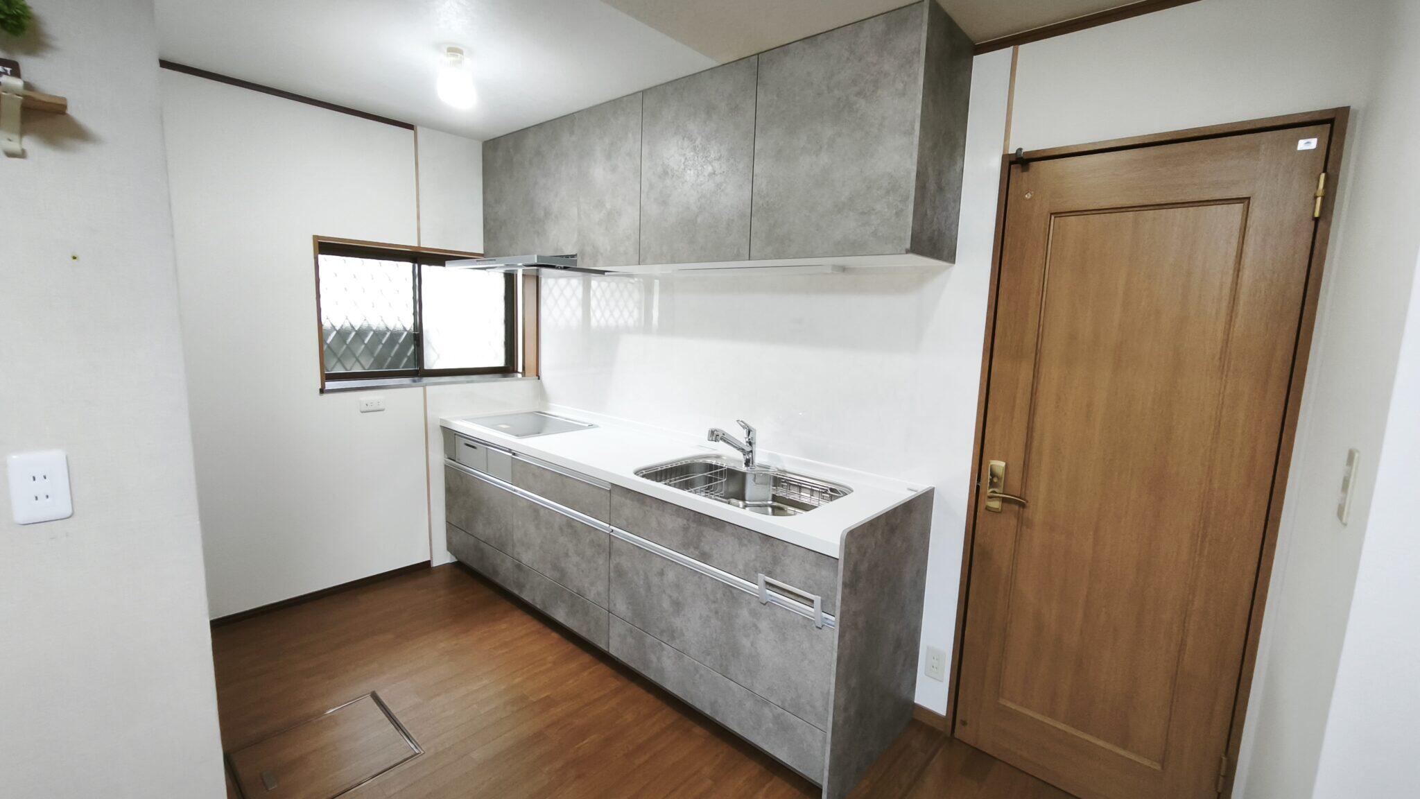 この度、キッチンの取替えをさせていただきました。 お客様からのリクエストもあり、L型キッチンからI型キッチンに取替えて、動線を短くしました。 床も一新して、新築のようになったと喜んでいただきました。 工期:5日 費用:約200万