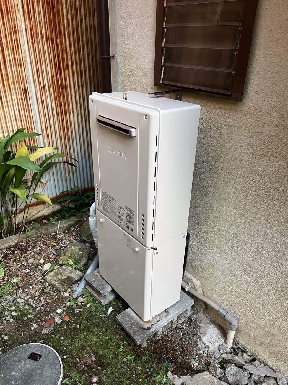 今回は、給湯器の交換工事をご紹介します。 給湯器が古くなり故障はしていないが、心配なので故障する前に取替をしたいとお問い合わせいただきました。 元々の給湯器には後継機種がなかったため、別メーカーの機種をご提案しご採用いただきました。 新しい給湯器は壁かけタイプの機種ですが、外壁が給湯器の重みに耐えられない可能性があったので、専用の置台の上に設置する方法で工事を行いました。 ずっと故障を心配されていたとのことで、工事後は安心してお使いいただけるようになりました。 冬が来る前に工事が完了でき、お喜びいただきました。 費用は、318,000円(税込) 工期は、1日でした
