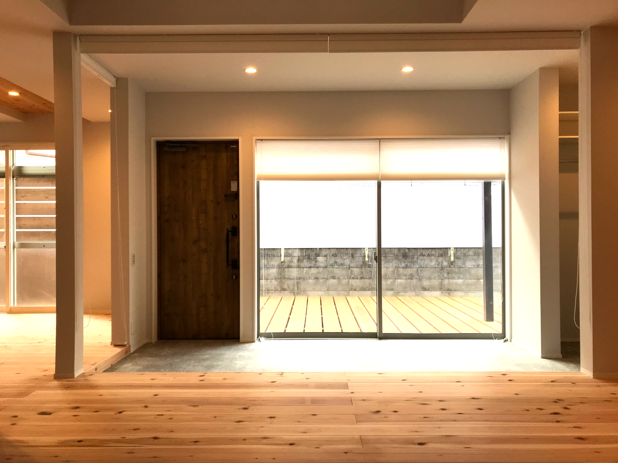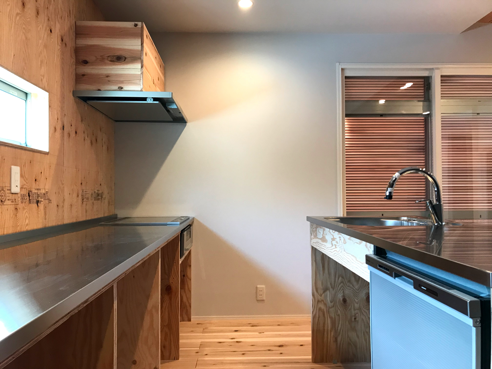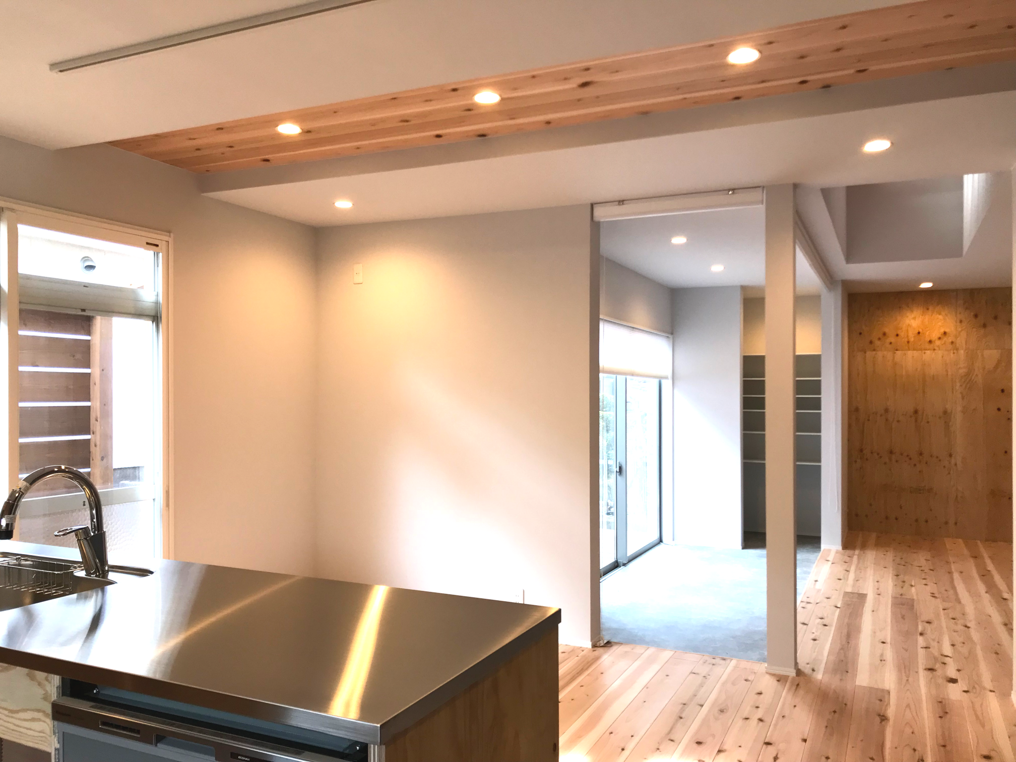 耐震・断熱などの性能向上、家事・生活動線の簡略化、開放的なLDKと外部空間、フルオーダーのキッチン、無垢材をふんだんに使った温かみのある雰囲気など、コンパクトリノベのコンセプトを詰め込んだモデルハウスになっています。