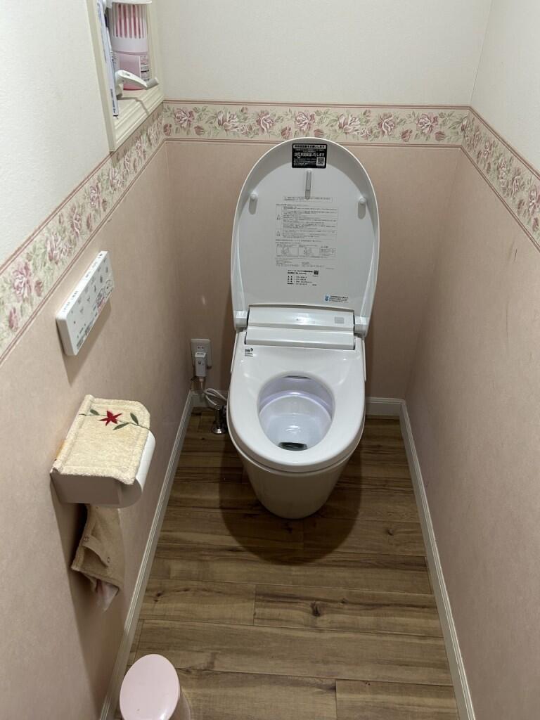 この度トイレの取替工事をさせて頂きました。 トイレが古くなったことをきっかけにご相談いただきました。 お掃除を楽にしたいというご要望をもとに今回リクシル製の「サティスS」をご提案させていただきました。 全自動の「お掃除リフトアップ」機能を喜んで頂きました! 取替処分費、給水位置移設、商品代、内装工事込みで約40万円 工期は一日でした