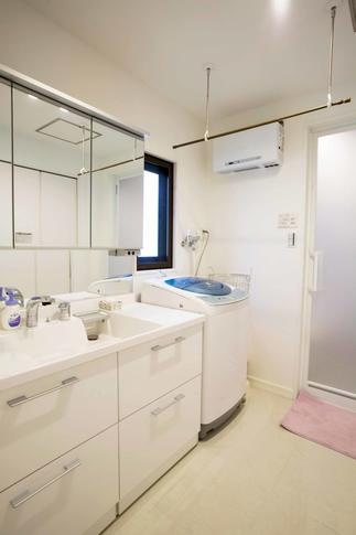 浴室は元の廊下を取り込んで、ゆったり入浴できる1717サイズのユニットバスに。洗面は収納量に配慮。さらに床暖房を設置して快適さもアップ。