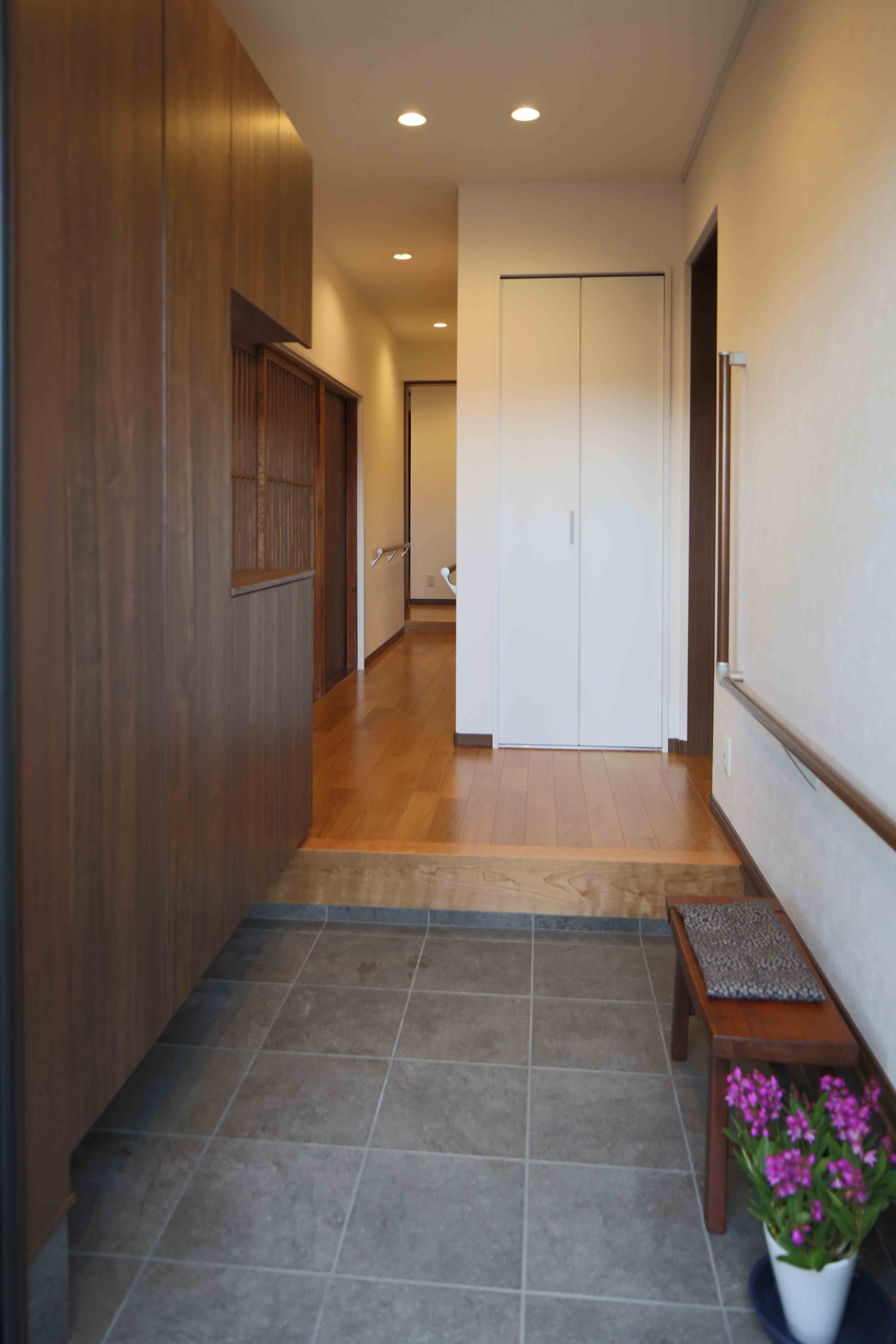 玄関土間をかさ上げした事により上がり框が低くなり、上り下りしやすくなりました。玄関収納も取替え、収納力とデザイン性UP!