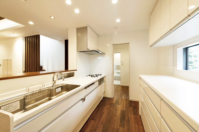 上部に仕切りがないので、開放感があふれるキッチン。家族との会話を楽しむことが出来ます。
