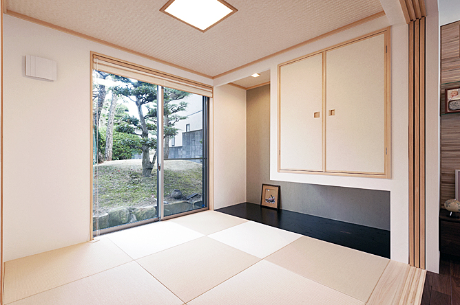 市松敷きにした畳は、落ち着きがある昔ながらの和の雰囲気を残しつつ、モダンな印象。