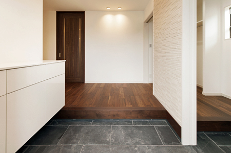 帰ってきた家族やお客様を迎える玄関は、いつもキレイに保てるように、玄関隣にシューズクロークを設置しました。
