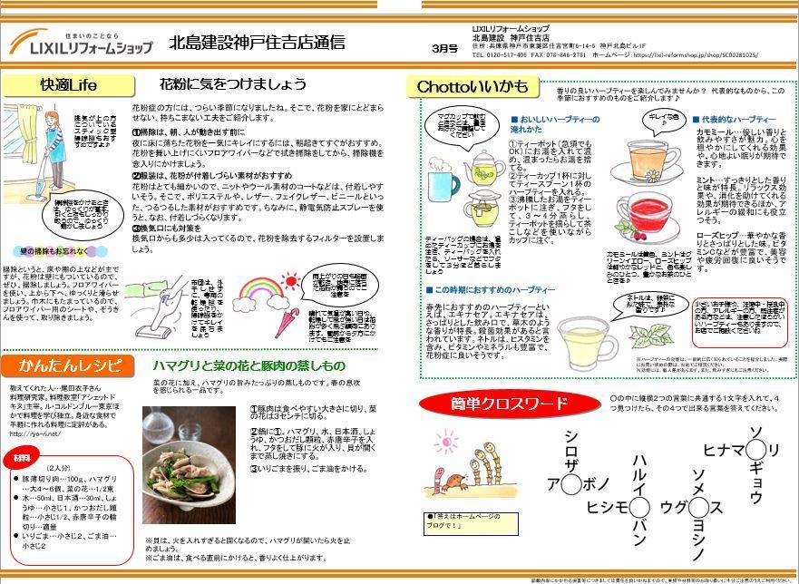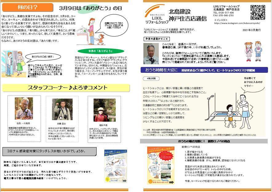『LIXILリフォームショップ北島建設 神戸住吉店 2021.3通信』を発行いたしました。