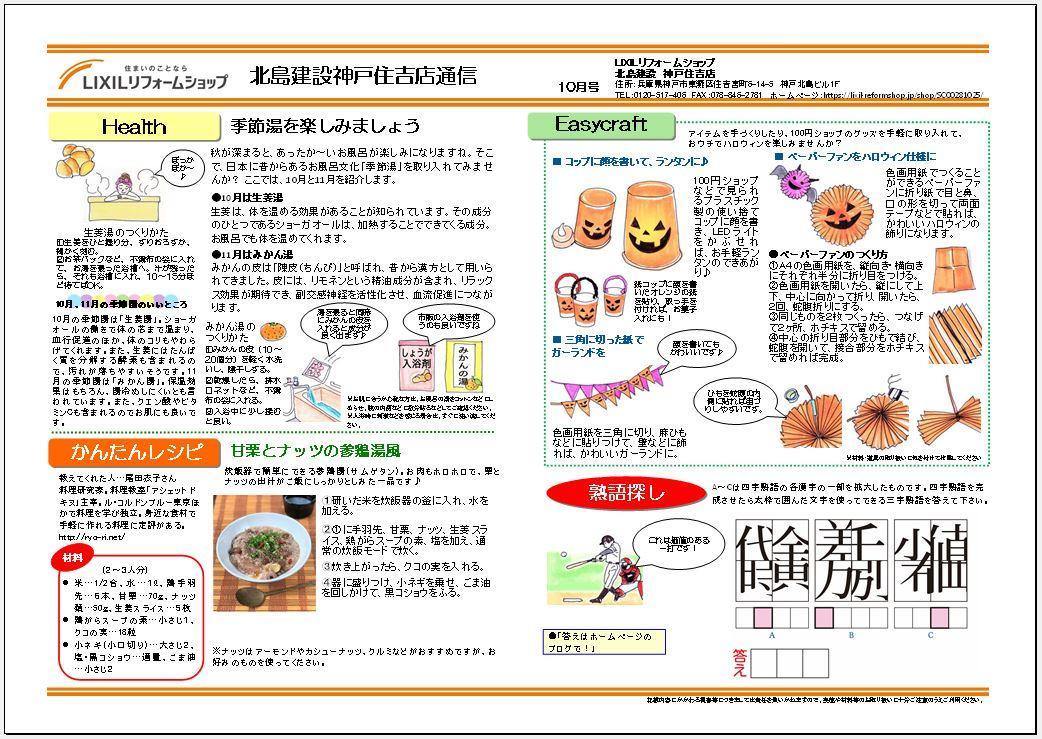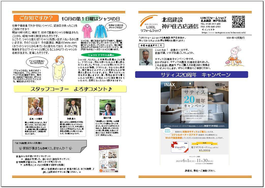 『LIXILリフォームショップ北島建設 神戸住吉店 2021.10通信』を発行いたしました。