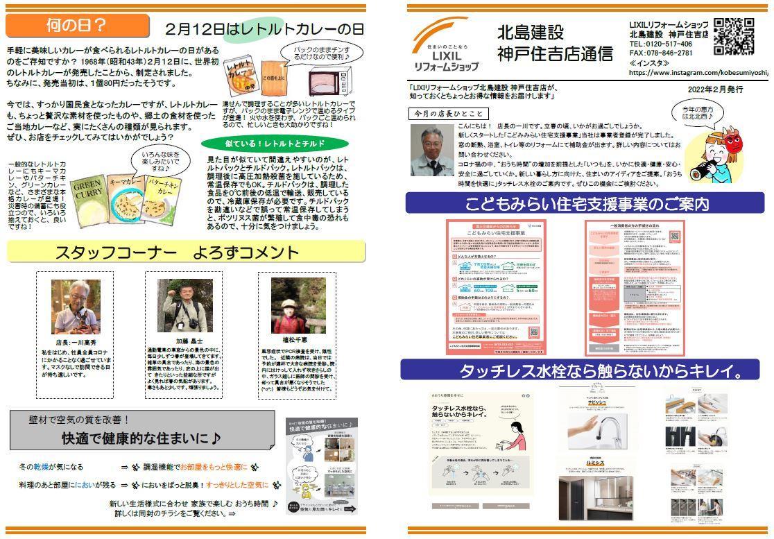『LIXILリフォームショップ北島建設 神戸住吉店 2022.2通信』を発行いたしました。