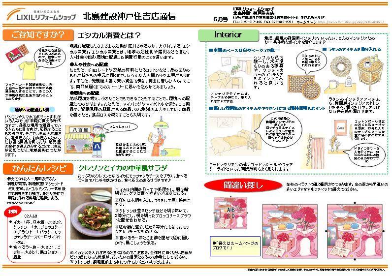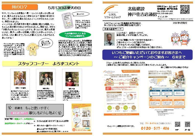 『LIXILリフォームショップ北島建設 神戸住吉店 2022.5通信』を発行いたしました。