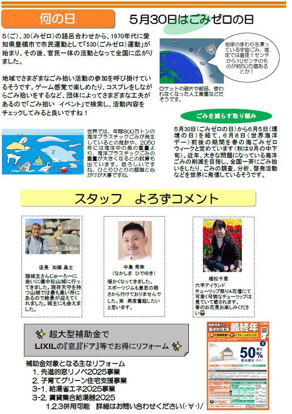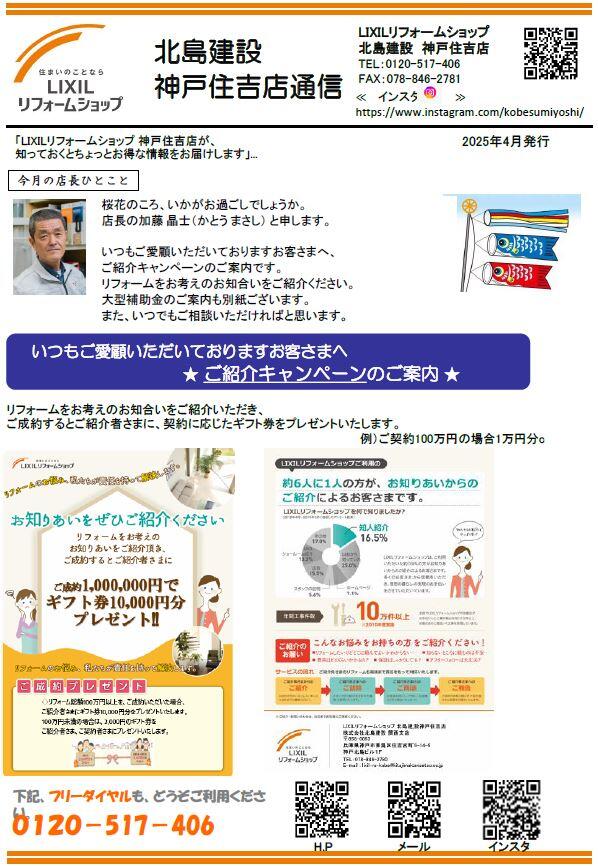 『LIXILリフォームショップ北島建設 神戸住吉店 2025.5通信』を