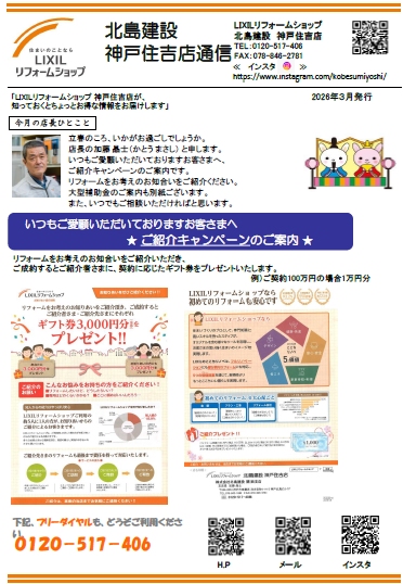 『LIXILリフォームショップ北島建設 神戸住吉店 2026.3 通信』を