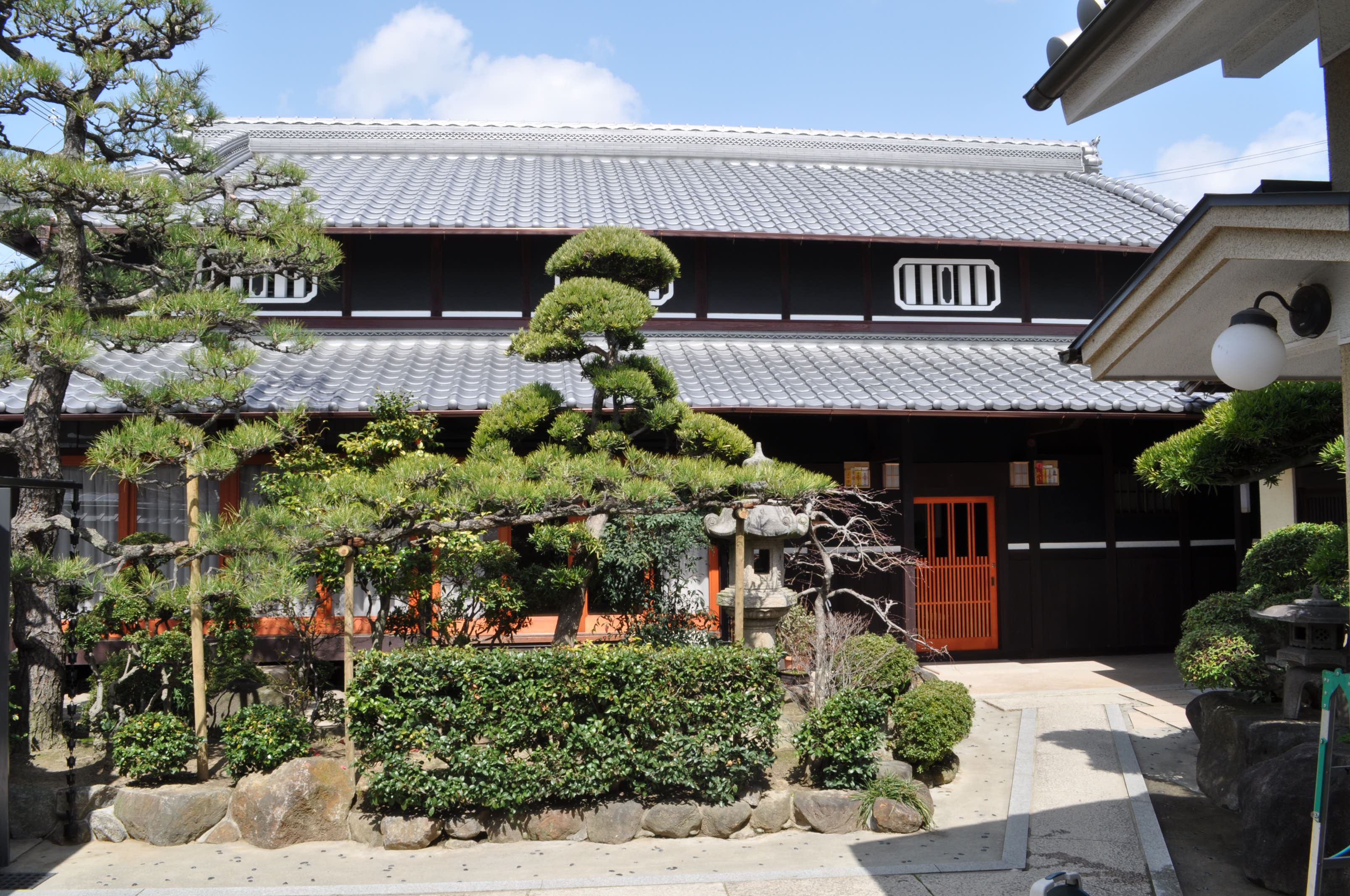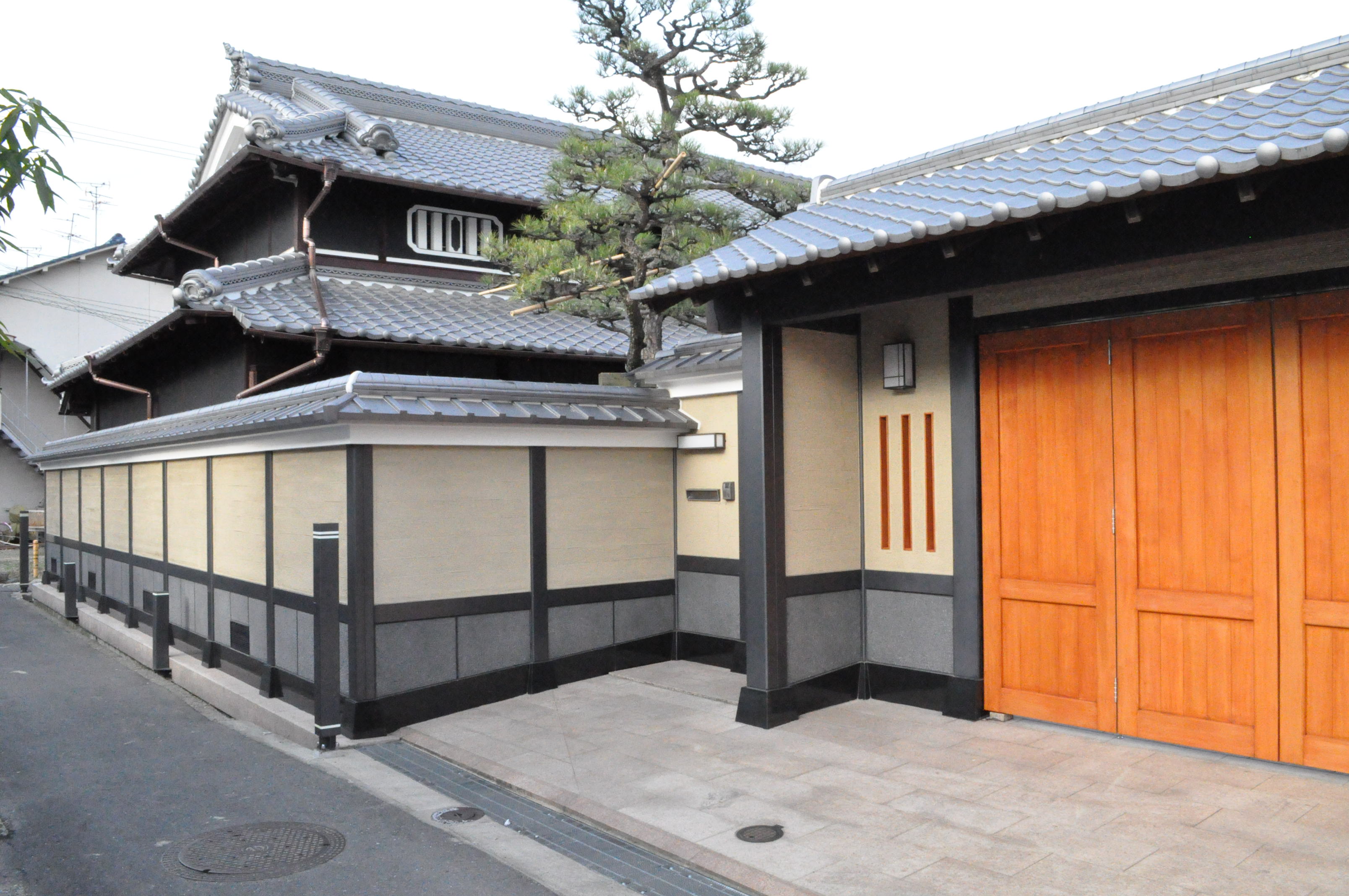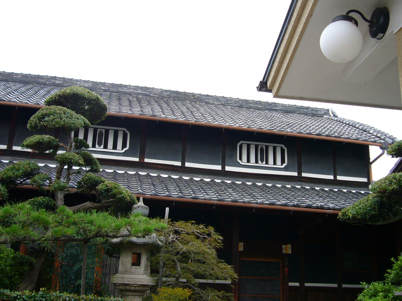 (塀 瓦)桟瓦 彦根が発祥の地とも言われている。又、京都の寺院の塀にも多く使用されている。軒部分が直線的に納まりスッキリとした中にも品格がある。