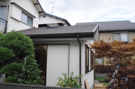 【増築部外観】 増築面積は29㎡。 ダイニング上部のトップライトが見える。
