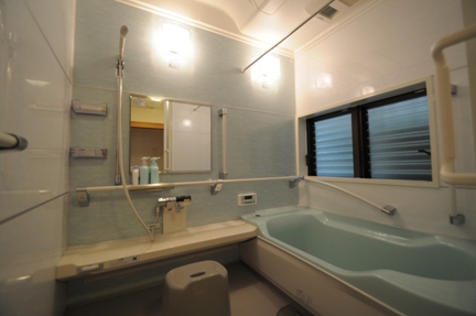 【浴室】 介護を前提にしてサイズ、仕様を決定。 特に手摺配置については担当ケアーマネージャーと検討のうえ決定した。