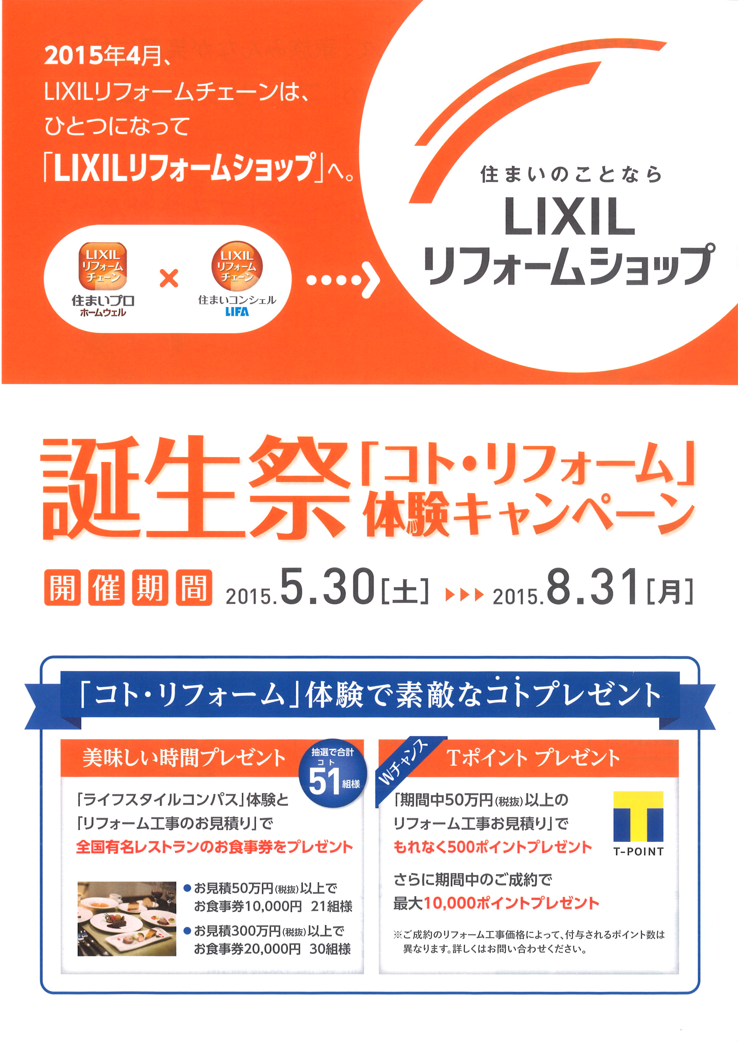誕生祭 「コト・リフォーム」体験キャンペーン