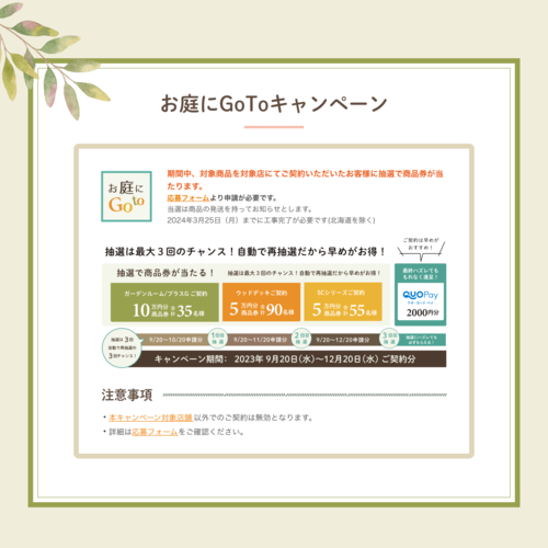 『お庭にGotoキャンペーン』~2023 秋~ 開催中です✨