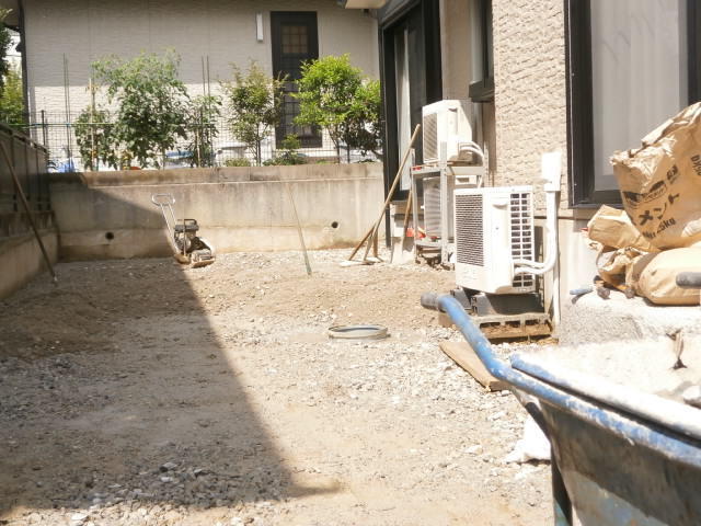 こちらは和風庭園を取り除き、コンクリート仕上げにしたガーデンリフォームです。よく遊びにこられるお孫様の為に、今のお庭では、つまずいたりこけたりと、怪我をしやすいので、段差のない広々としたコンクリート仕上げにしました。