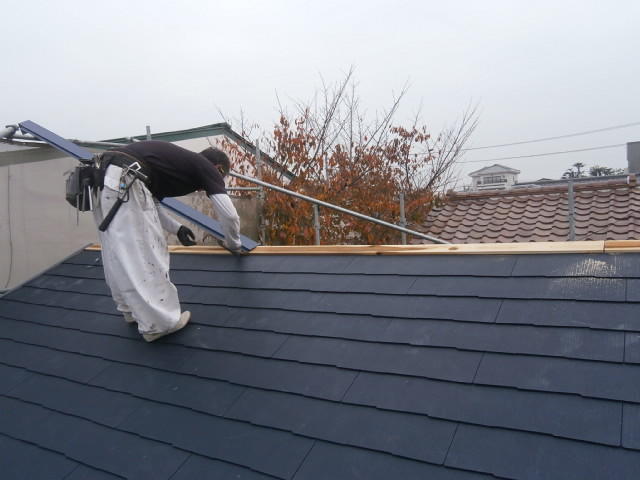「評点0.4以下」との耐震診断結果でしたが、、瓦屋根をカラーベスト屋根に軽量化するとともに、リフォームする水廻りの外壁に耐震補強をして、評点0.7までにあげる工事をしました。