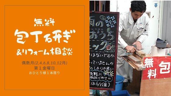 偶数月(2,4,6,8,10,12月)の第1金曜日に恒例の無料包丁研ぎを開催しています。