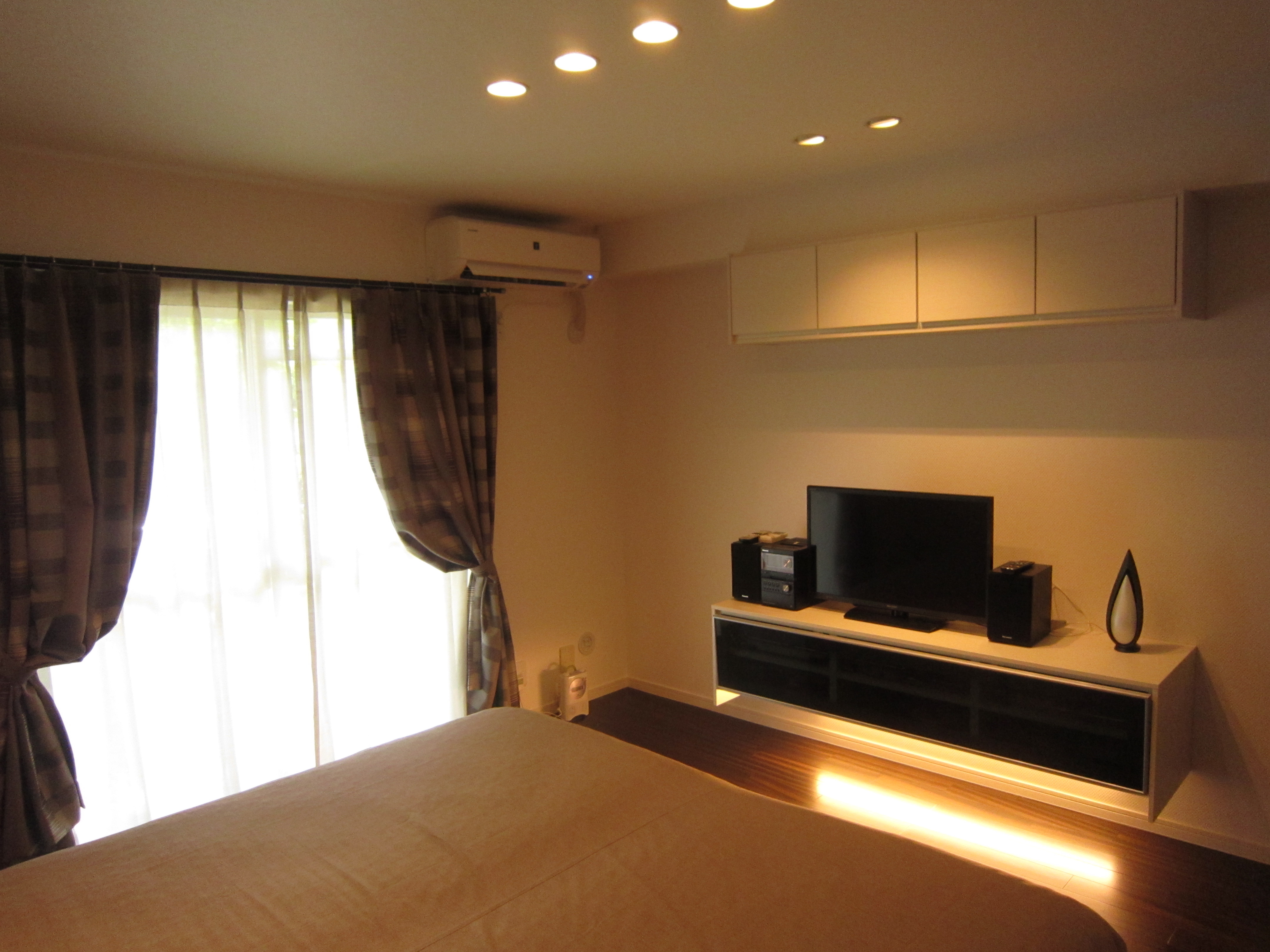 以前和室だった事を感じさせない寝室にする事が出来ました。 ホテルのような部屋にしたいと言うお客様の要望に、当社コーディネーターが苦労をして考えてくれました。 お客様に喜んでいただき、大変良かったです。