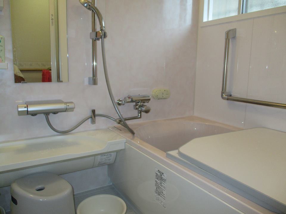 風呂が狭くてタイル張りの為お母様のヒートショックが心配なので暖かく広いお風呂にしてほしいと息子様から要望がありました。 お風呂を広くするために洗面所も移設を行い広い脱衣所&浴室になりました。断熱浴槽を取り入れたため保温効果が高くなりました。