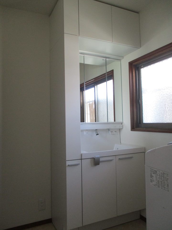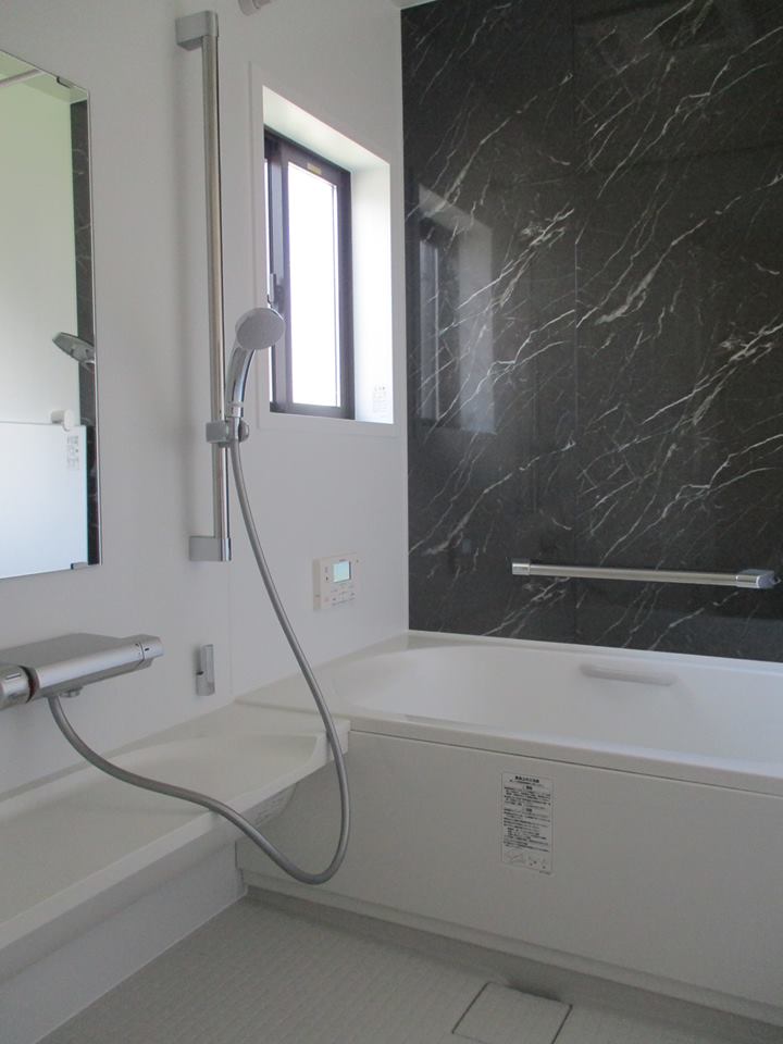 浴室はタイル貼りでタイル目地の劣化や天井付近のカビが気になり、浴室の入り口付近の床も少し柔らかくなっています。冬場はとても寒く、お湯もすぐに冷めてしまうということで、浴室をリクシルのユニットバス、アライズシリーズにし、換気乾燥暖房機を装備し冬場はヒートショック事故の防止に、夏場はカビの発生を抑制できます。また、断熱効果が高いので、お湯も冷めにくく経済的になります。シャワーバーは手摺りの機能を兼ね備えていますので、入浴時の転倒を防止します。浴槽は足を伸ばしてリラックス出来るようになっています。