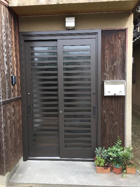 防犯強化の為、玄関・雨戸・窓ガラス(防犯ガラス)の交換させて頂きました。従来の引き戸玄関が防犯性能はもちろん強化、壁を壊さず朝から工事を開始して夕方には新しくなりました。雨戸も窓ガラスも交換して1DAYリフォームです。出来上がりにお客様にも大変喜んでいただきました。