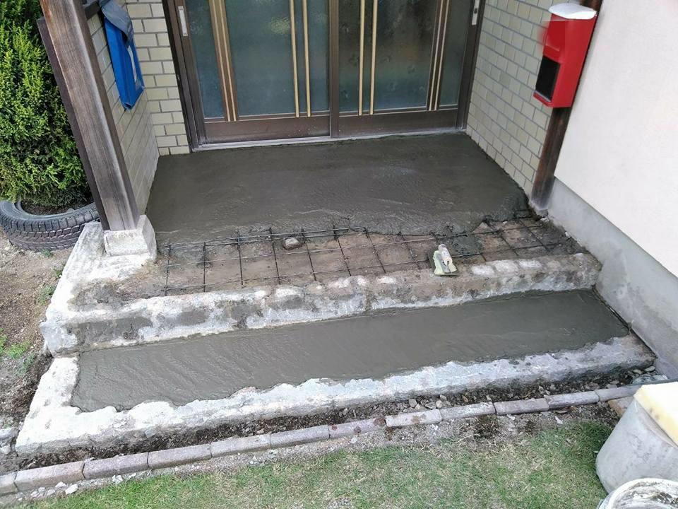 玄関前のモルタルにひび割れができているので直せますかと、ご相談を頂きお伺いしました。直すついでにタイルを張り、玄関前をキレイにしませんかとご提案♪タイルの見本を持って行きイメージして頂いたところ、お願いしますと御依頼頂きました。