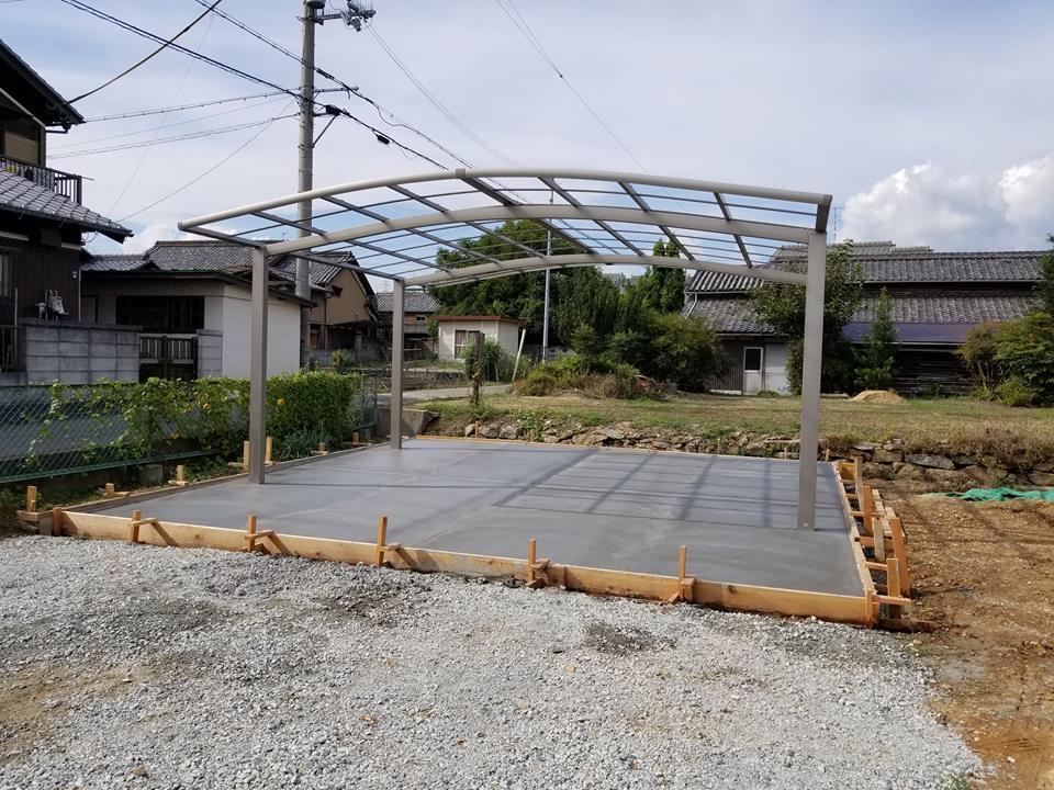 台風前に完工していたカーポートの施工現場。本日天候が良かったので撮影してきました。のどかな風景にも違和感無く完成です。