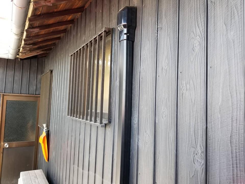 ご相談頂いた理由は、強風で焼杉板が飛んでしまってお困りでした。予想以上に下地が痛んでいたりして、手間取りましたが本日完成し、お引き渡しさせて頂きました。お客様のご要望で、焼杉板から化粧プリン鋼板への改修工事でした。断熱性は無いのですがコスト面や長持ちの面などメリットもたくさんあります。また、最近は色々な柄も有り、選択の幅が広がりました。張替が完了すると、建物がシャキッとしましたね!