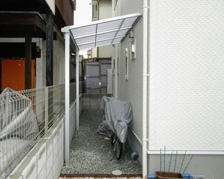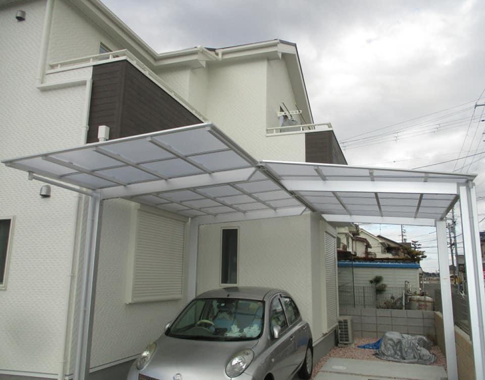 新築住宅のカーポート・その他工事のお話を頂き、施工完了致しましたのでご紹介。カーポートは角地である為、2台分をスライドする状態で設置しています。勝手口からのストックヤードの屋根取付。駐輪スペースの屋根設置の諸工事が完了いたしました。ベランダの床面には、タイル調の樹脂製化粧材を敷設しました。そして室内収納にユニット式棚板を設置しました。