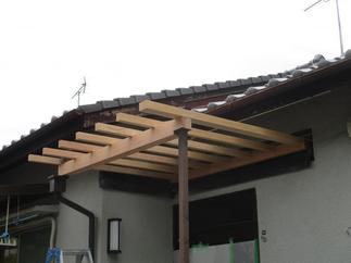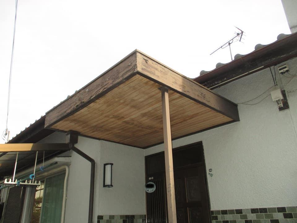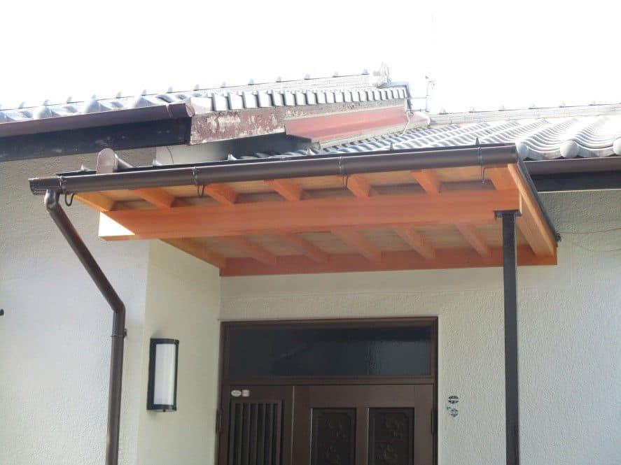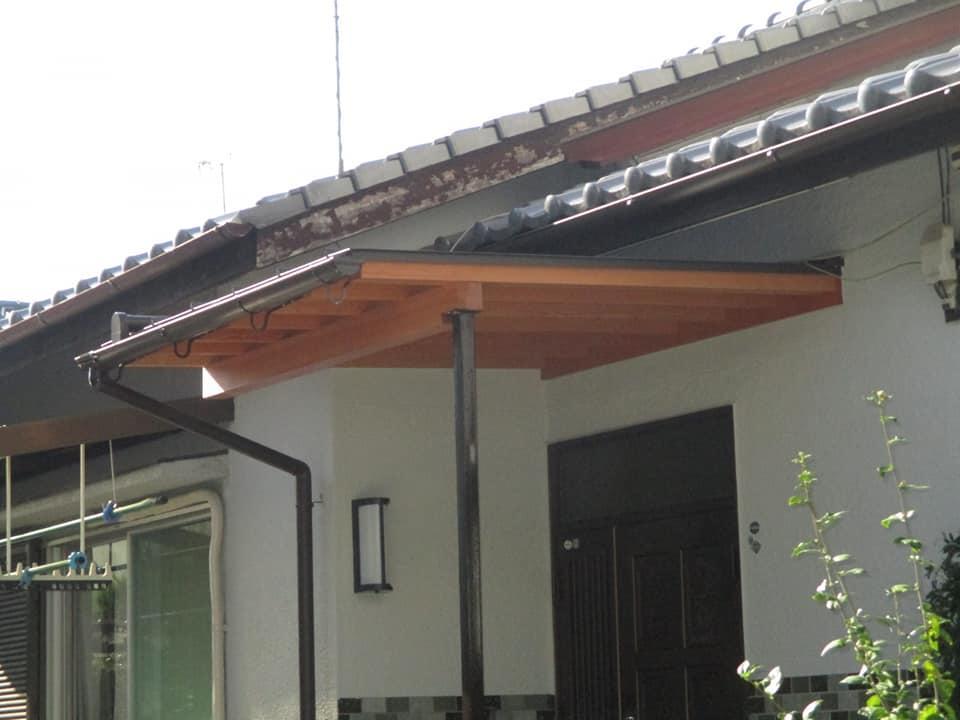 重厚感は有りませんが、すっきりとした庇にお客様からも「落ち着いた感じで気に入りました。」、それに「これで雨の日に庇の下に居るにも関らず傘をさして出入りしていた不便から解放されます。」との喜びのお声を頂きました。