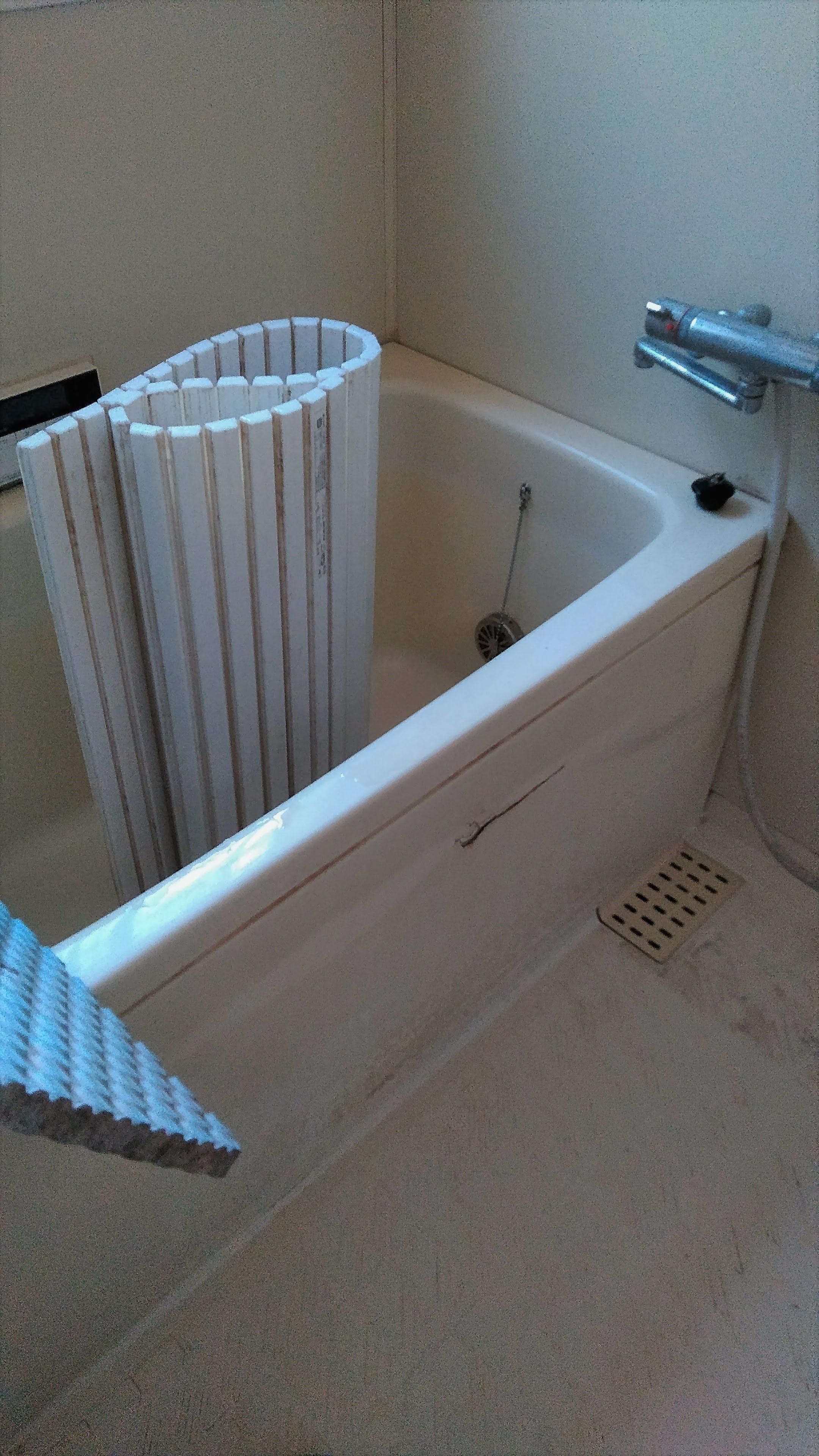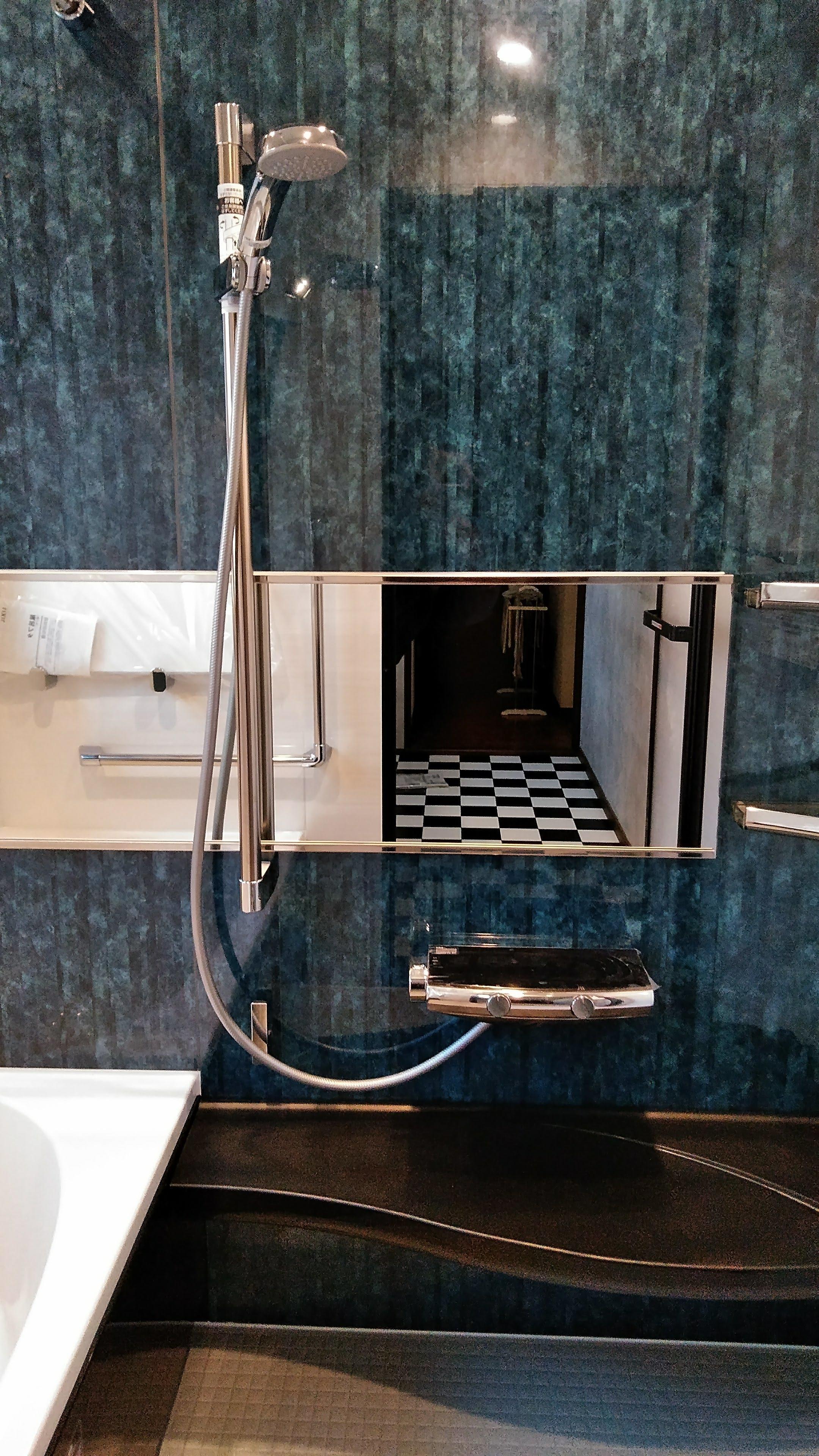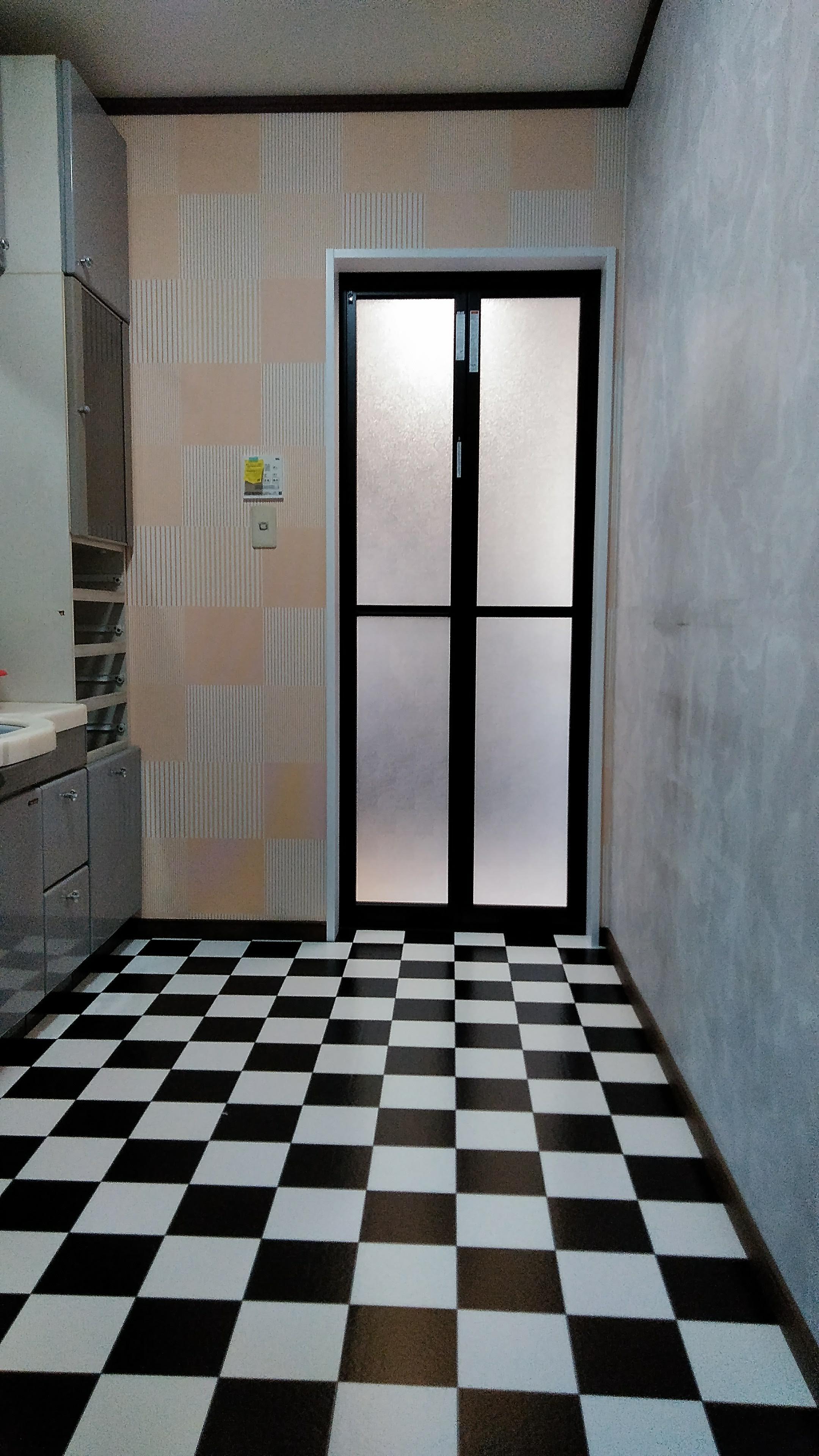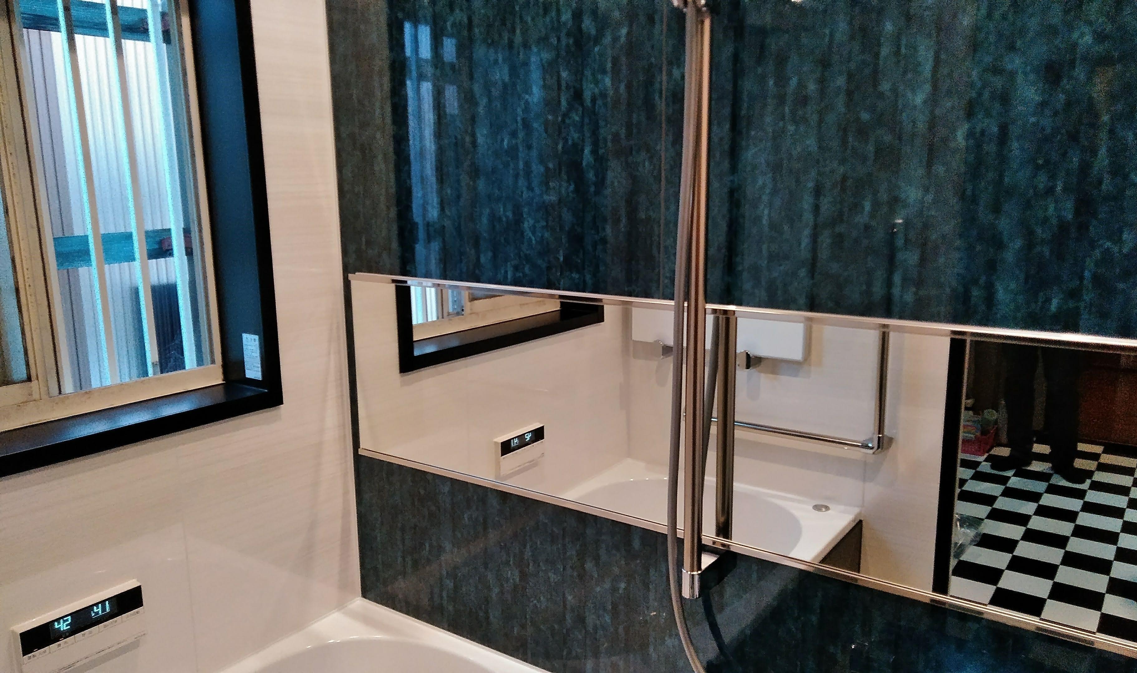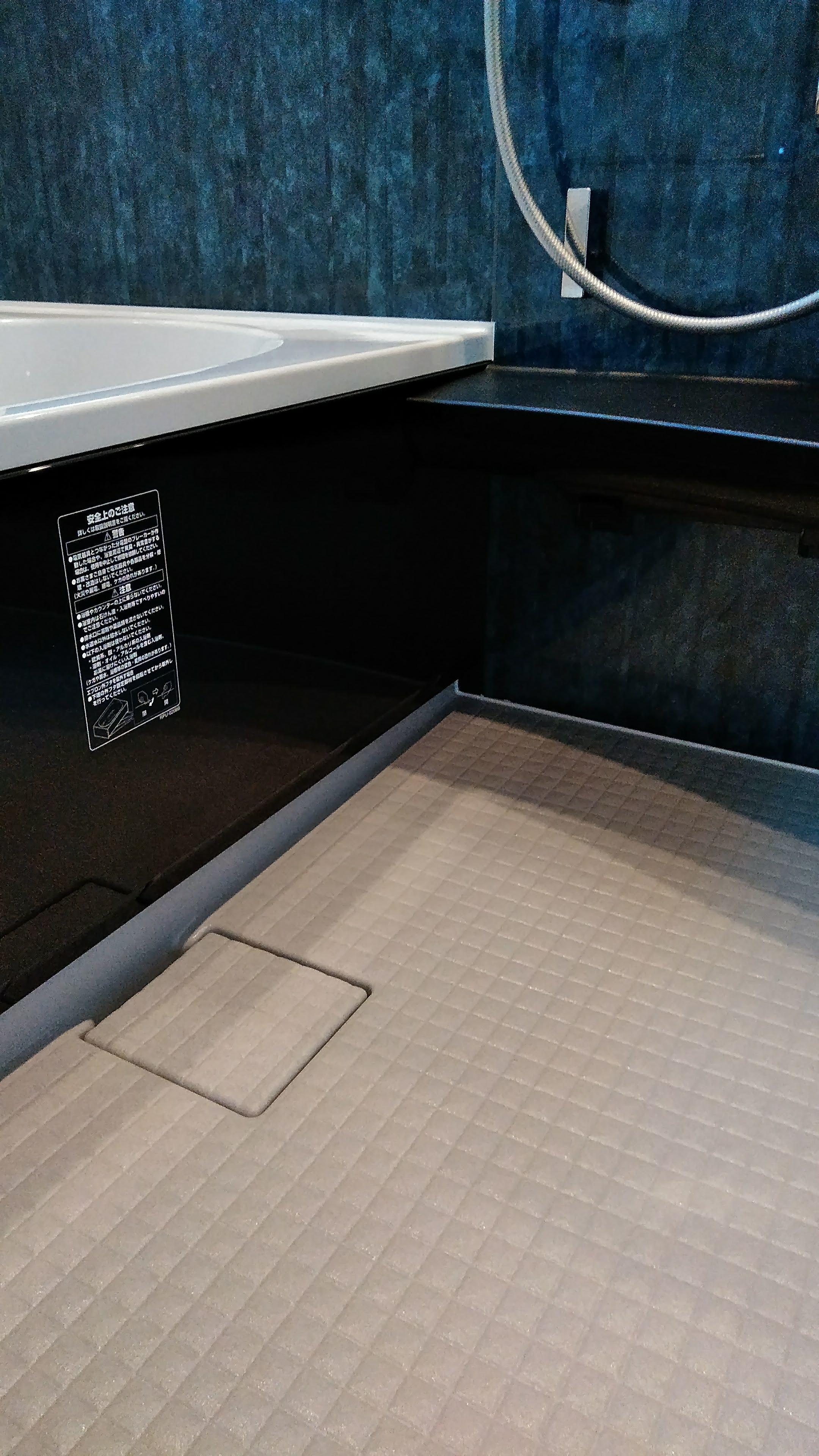 以前の浴室は換気扇がなぜか設置されておらず、浴室全体が湿気によりカビが多く発生していました。また、冬場はとても寒いということでした。LIXILのシステムバス「アライズ」に入れ替え、浴室暖房機も今回は設置致しました。これでお困りごとは解消できます。脱衣室の床はご主人様が選ばれた柄でインパクト大ですね♪