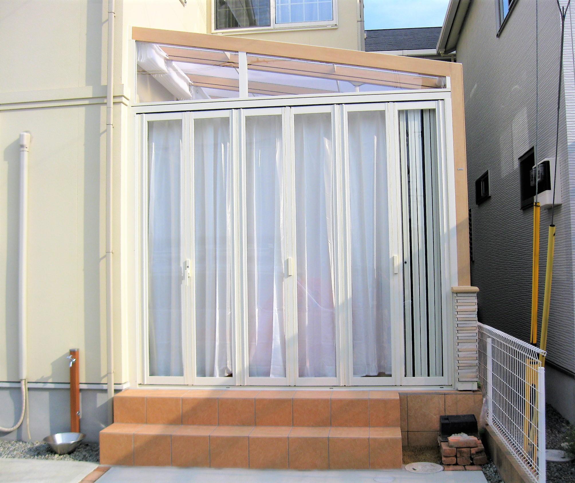 当初、フェンスの入替工事でお話をいただきましたがお話が進んでいくうちに夢が膨らんでいき、ガーデンルームを設置させていただくことになりました。お選び頂いた商品は、LIXILの『ココマ』腰壁タイプです。お好みのタイルを腰壁に選ぶことができるため、お部屋のインテリアとコーディネイトできます。リビングが広がった空間 ガーデンリビング を楽しんで頂けると思います。外観の見た目もイメージ通りにできたようで、大変喜んでいただきました。
