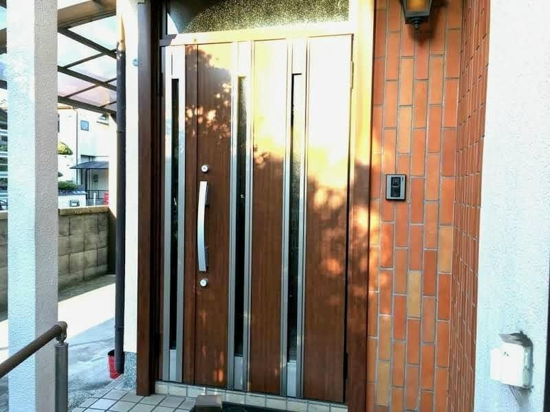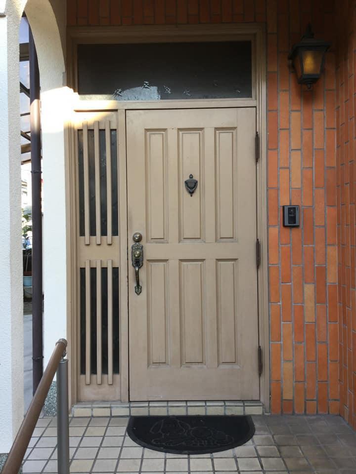 施工前の玄関ドアは、年数が経ち少し傷んだ状態でした。
