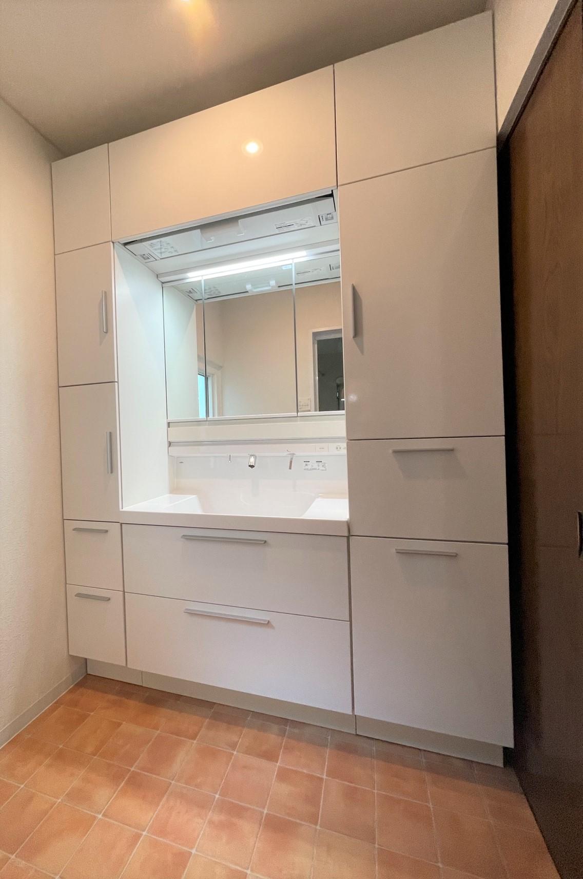 また、洗面室の化粧台は奥様のご希望で出来る限りのスペースを確保して、