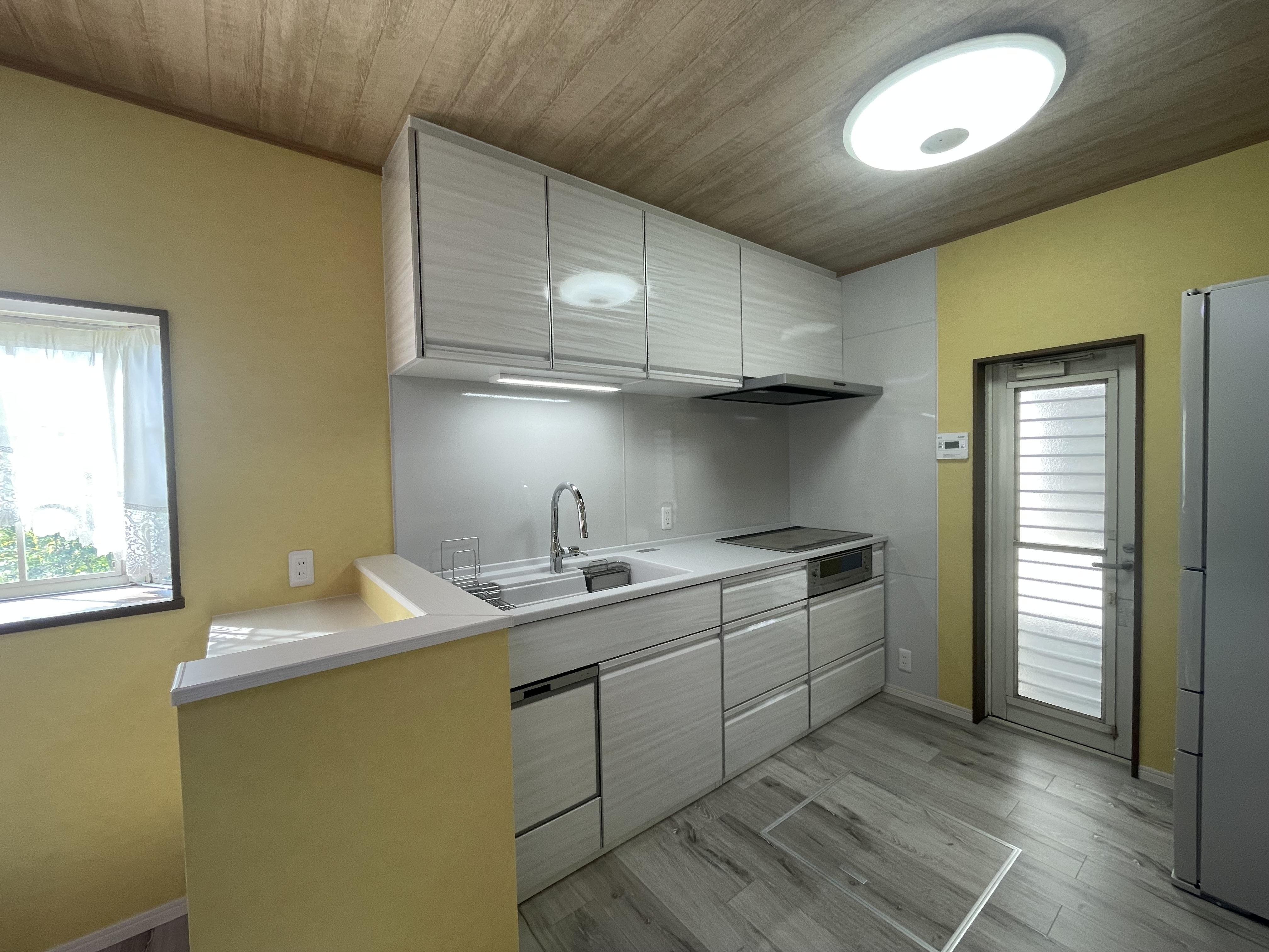 キッチンのレイアウトをL型からI形に変更し、大きなカウンターも撤去することで、