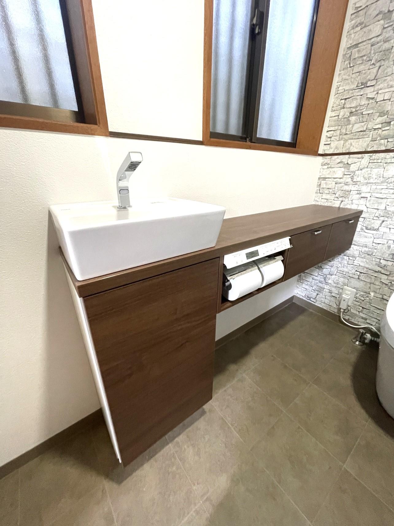 手洗い器のあったところには収納を設けて、