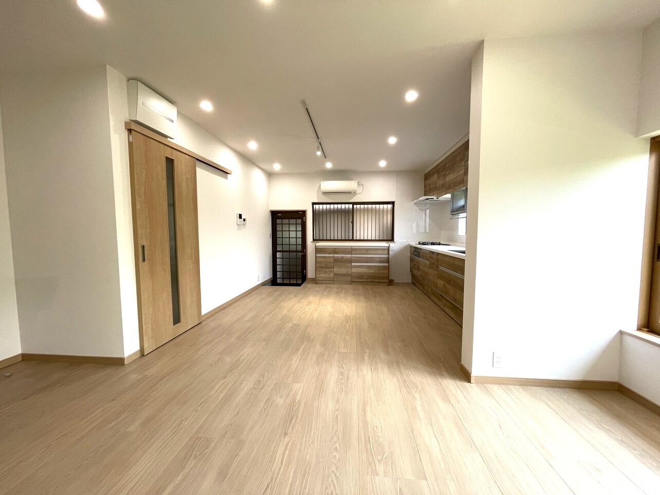 もともと1階のLDKは、ダイニングと和室の2部屋に分かれていましたが、「家族みんなで広々と過ごしたい」というご希望を受け、余分な壁や敷居をできる限り撤去。