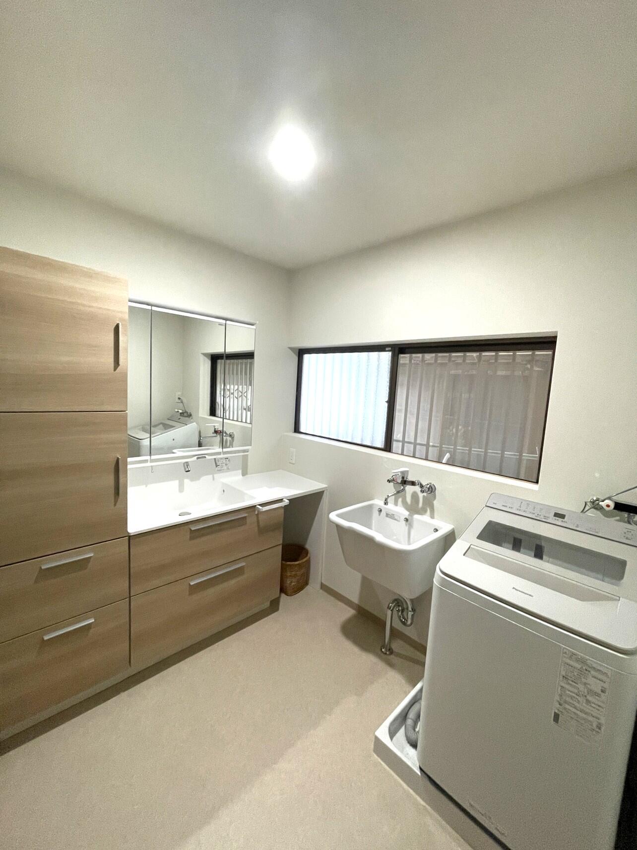 収納力のあるキャビネット(LIXILクレヴィ)も設置し、使い勝手の良い空間になりました。