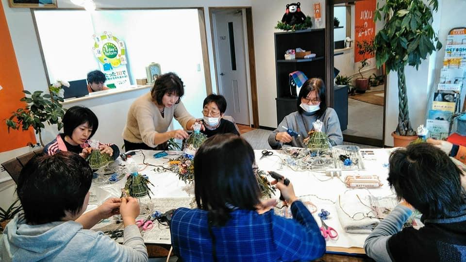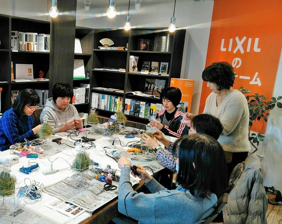 今回は枯れない花で人気のプリザーブドフラワーを使ってアレンジメントを作製。講師の三軒先生に丁寧に教えていただきながら、会話も弾み、皆さん楽しい雰囲気の中で作ることができました。