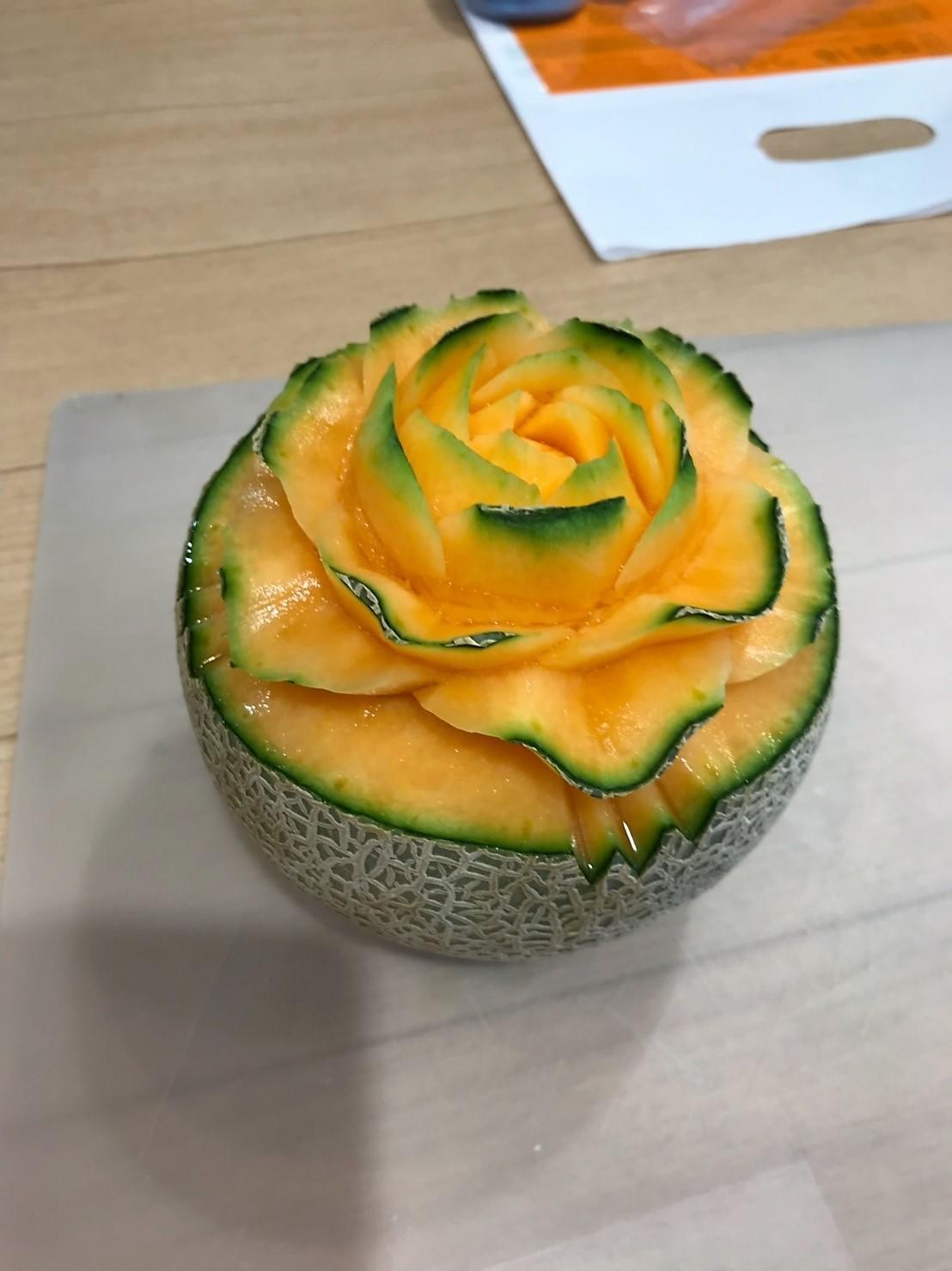 また、ソープカービング終了後に、森脇先生がフルーツカービングを見せてくださいました。