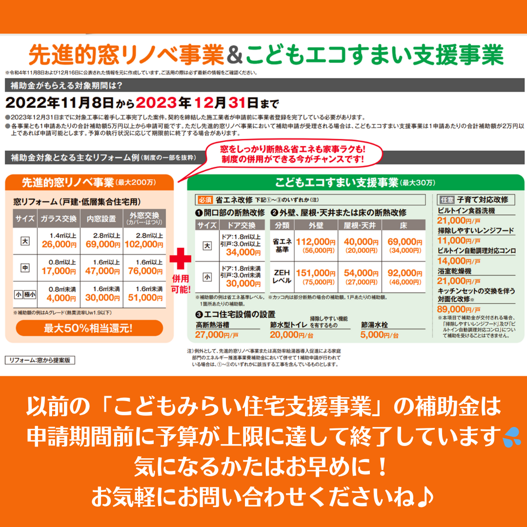 窓リフォームをお考えのお客様は、お早めにお問合せくださいね。
