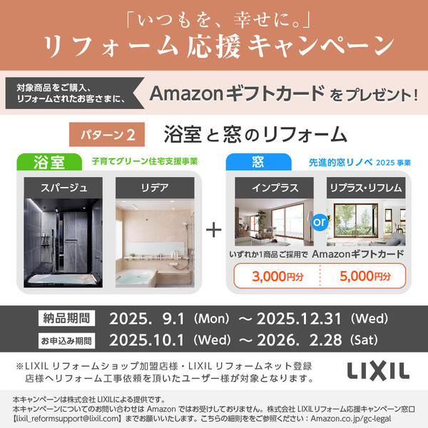 2025年9月1日(月)~12月31日(水)の期間限定で、LIXIL「リフォーム応援キャンペーン」 が開催されます!