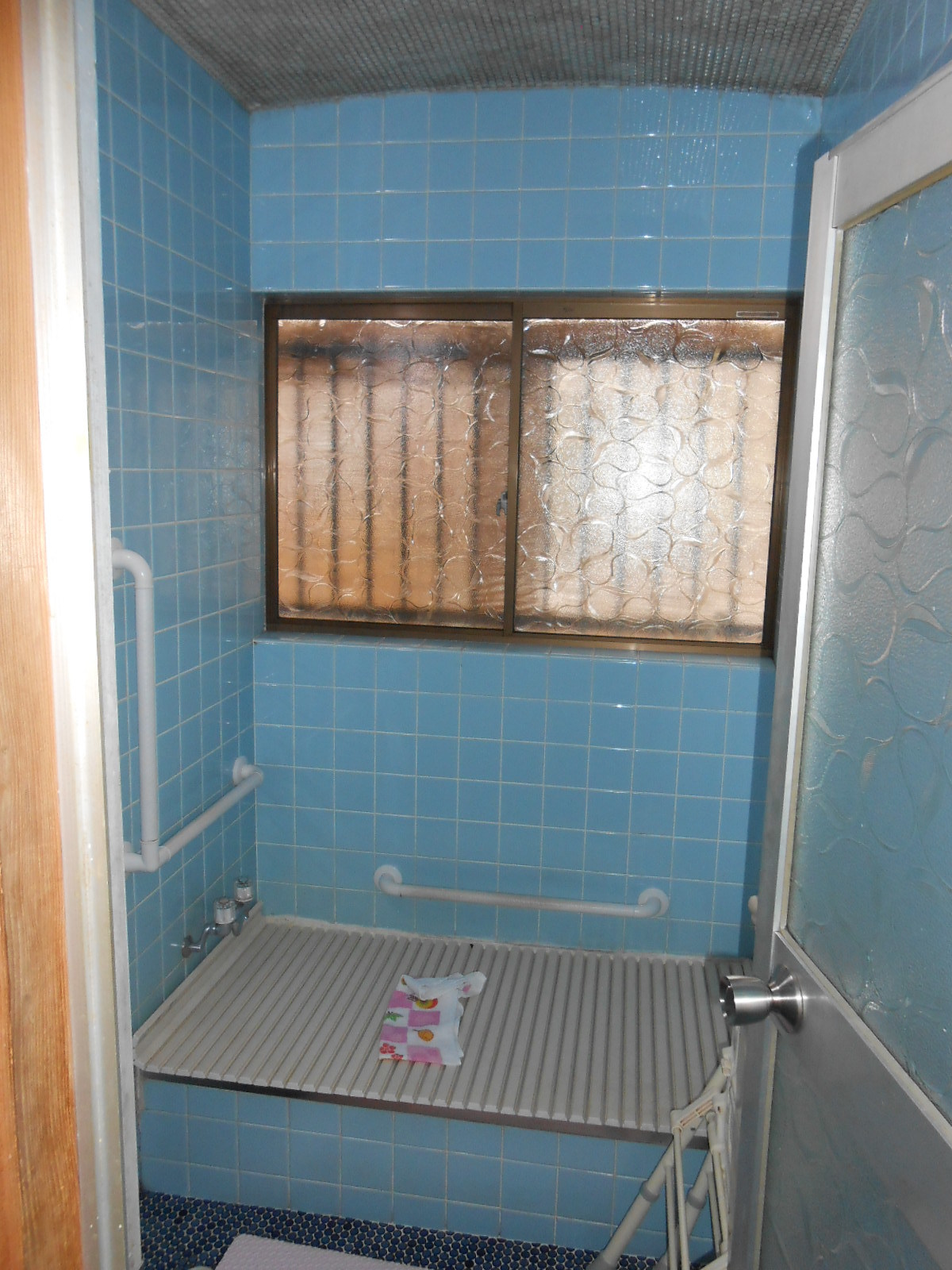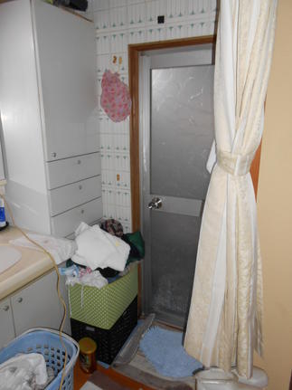 洗面施工前 カーテンで目隠しをして脱衣をされてました。