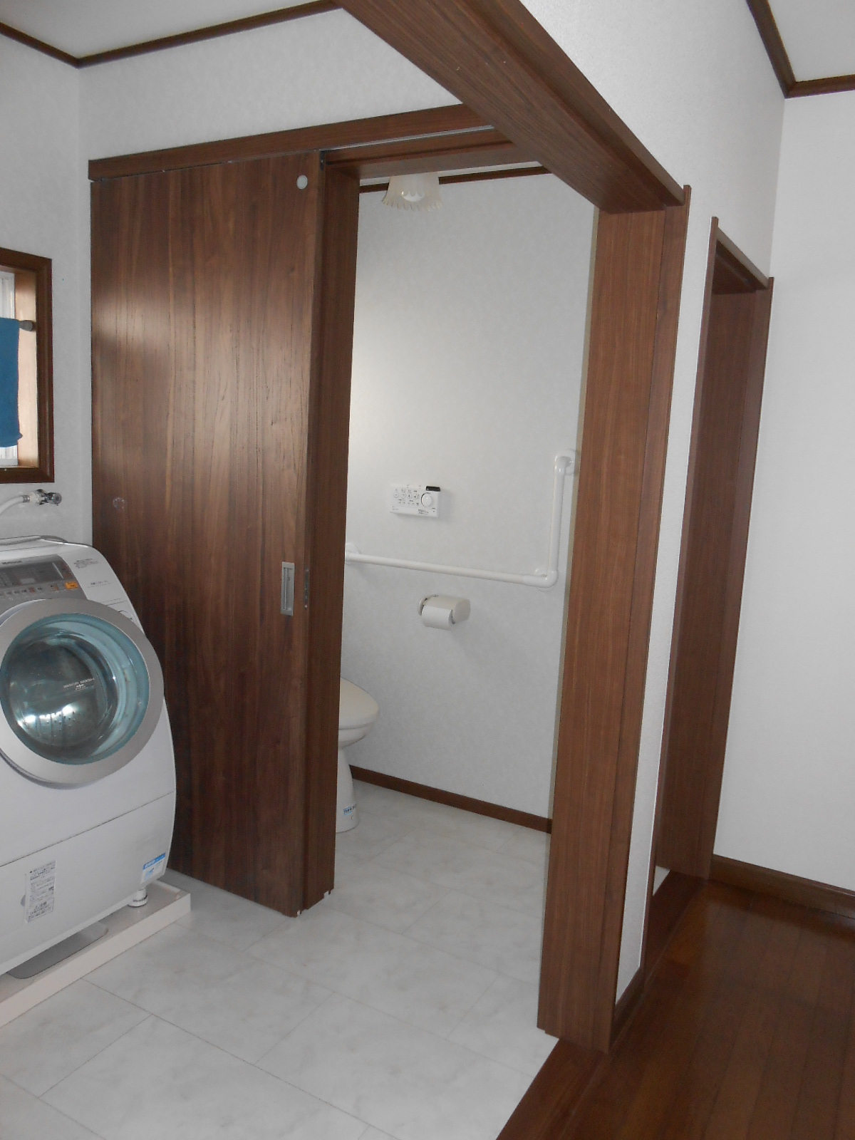 施工前間口が狭く、入り口には段差もあり、車いすでは利用できず、介助もしづらい状況でした。