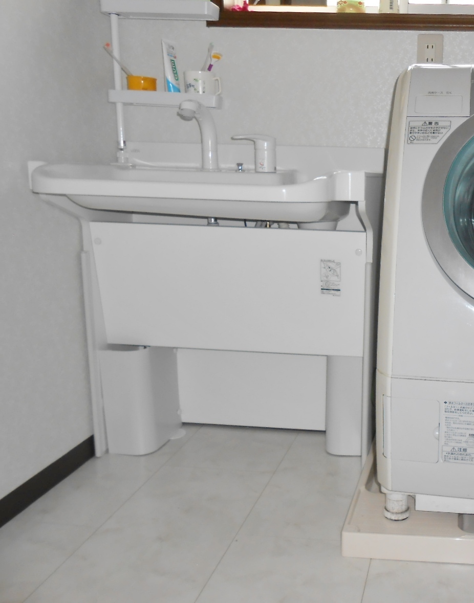 LIXILのドウケアカウンター。車いすで利用できるので、一人で洗面ができるようになります。