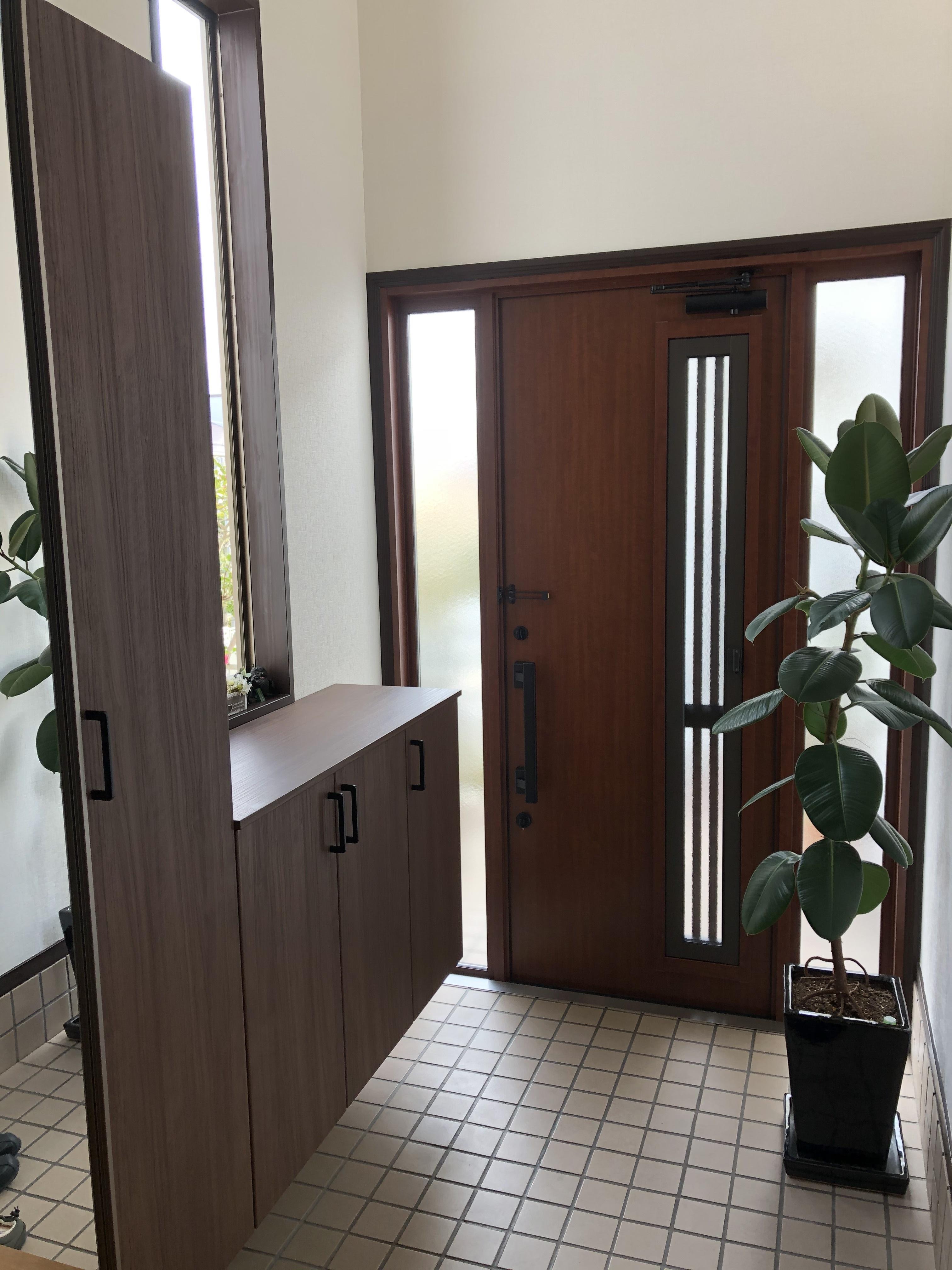 玄関ドア、玄関収納の入替をされたU様邸。採風タイプの玄関ドアはカギを閉めたまま、換気が可能。 玄関の風通しを良くすることで、夏でも涼しく快適に過ごしていただけます。