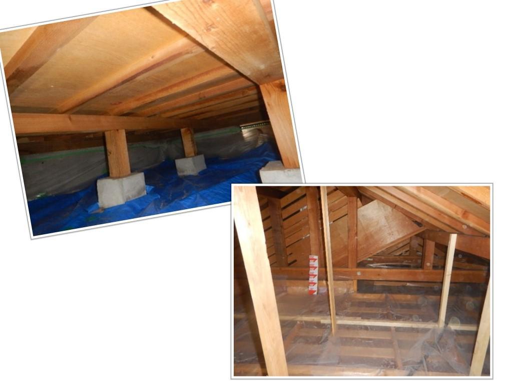・天井は下地を補強し、気流止め・防湿シートなどの手順をふみ、吹込みグラスウールでの天井断熱です。