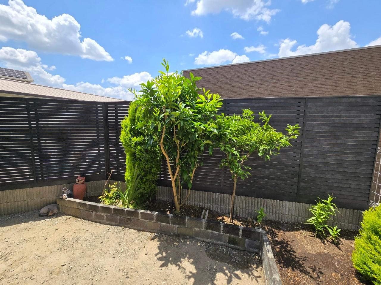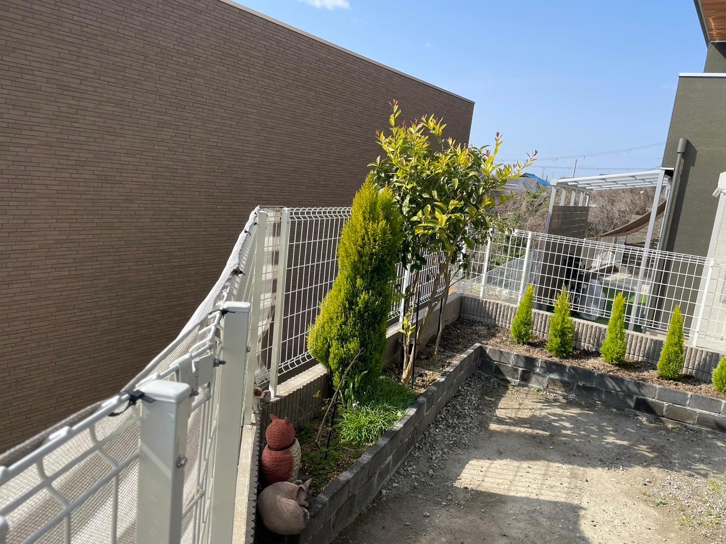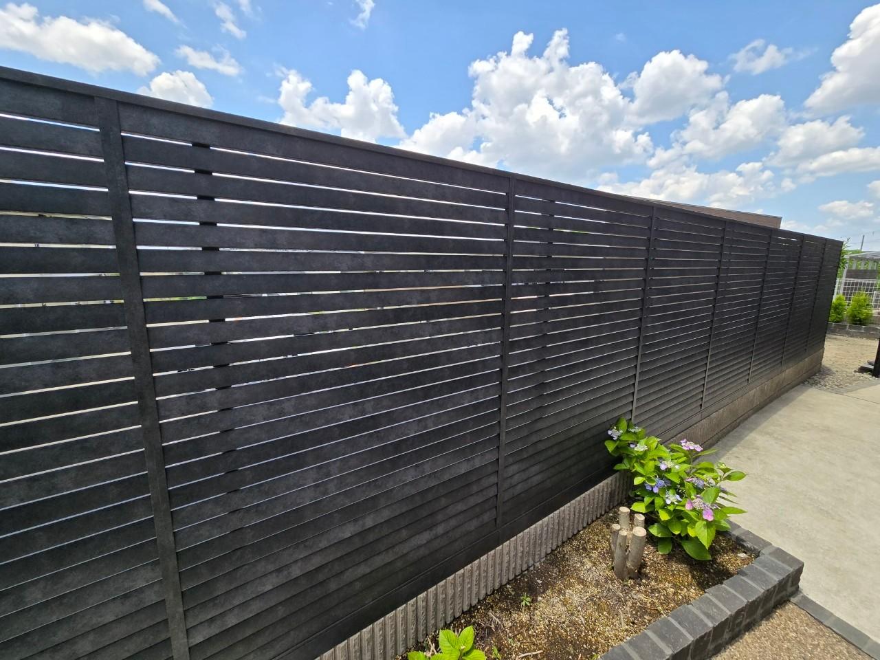 元々のハイブリッドフェンスでは、目隠し要素がなく、お隣のアパートからリビングがまる見えで 昼間でもロールスクリーンを降ろして生活されておりました。 そこで、背の高い目隠しフェンスに交換しようと云う事になりました。 せっかく交換するのであれば、他で見た事のない見栄えの良いフェンスを取り付けたいと云う希望があがりまして LIXILの高級モデル「ML1型」フェンスを設置する事にしました。